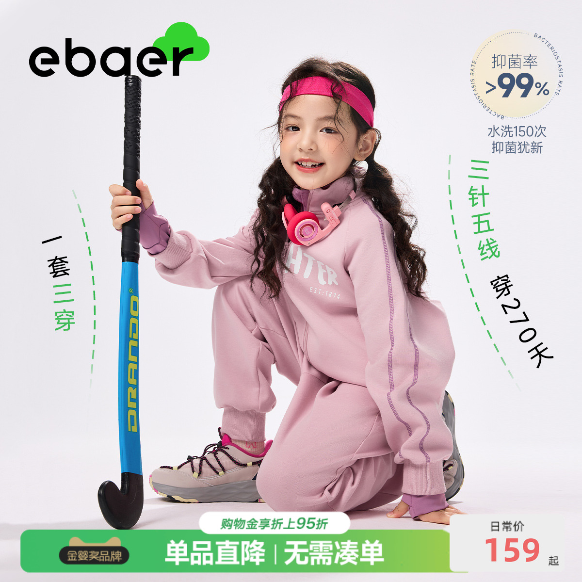 外套裤 EBAER儿童运动套装 男童开衫 新款 子女童休闲两件套 2025秋季