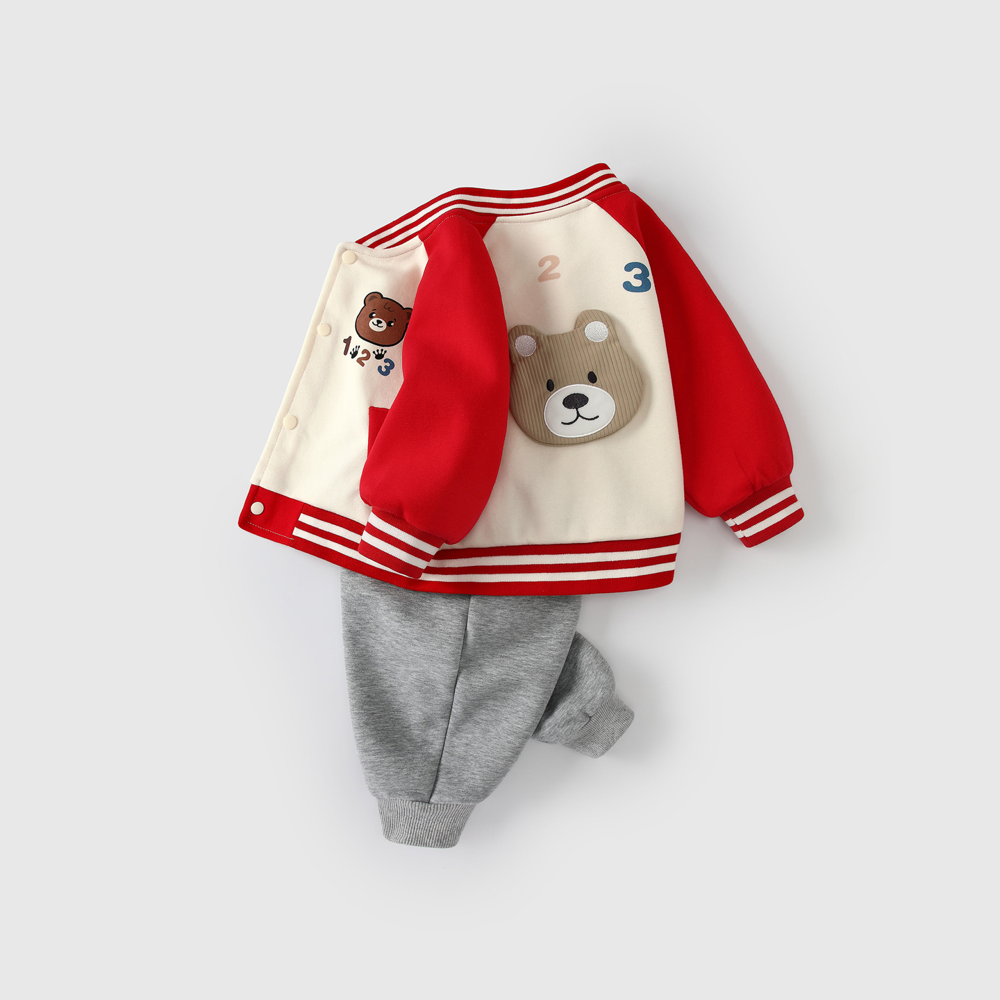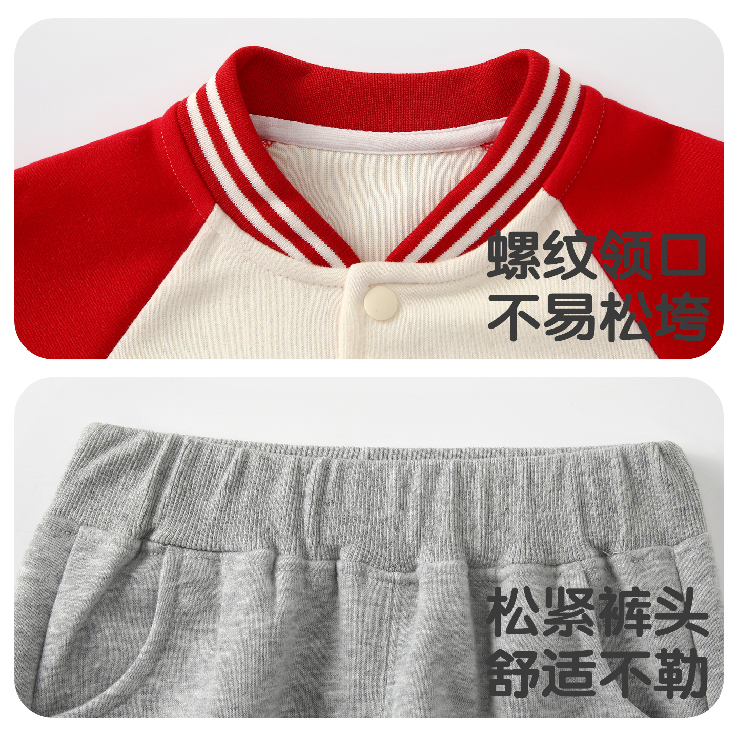新年红卫衣运动套装 ER条纹撞色开衫 校园风运动服定制 明星同款