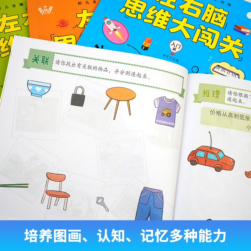 左右脑思维大闯关儿童专注力训练书全套4册 视觉听觉注意力挑战训练幼儿左右脑全脑开发思维训练书籍三到四宝宝2到6岁以上早教书