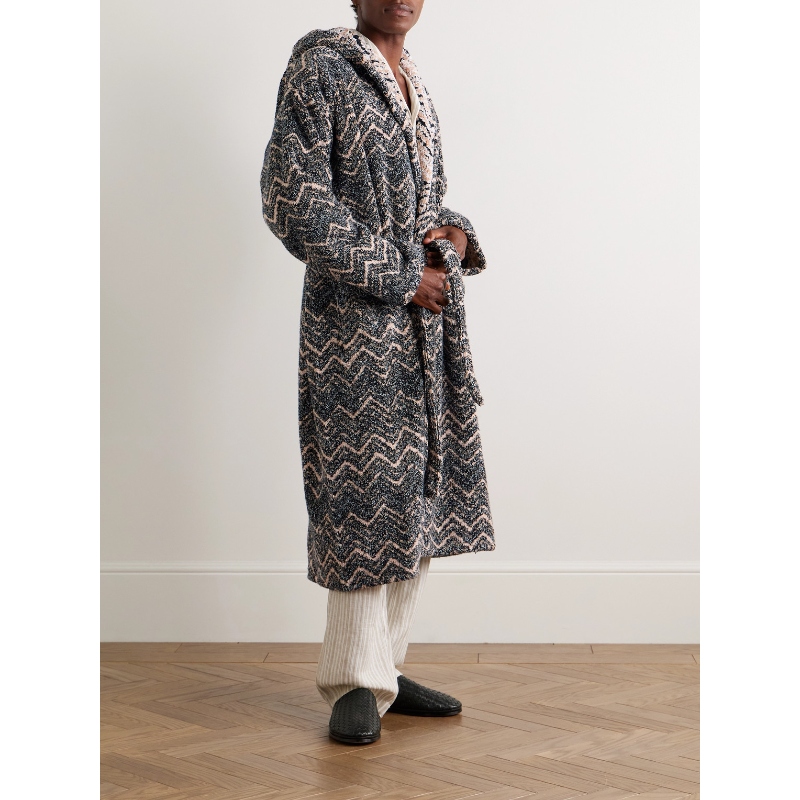 迷衣时尚 条纹棉质厚绒布提花连帽睡袍 男款 Missoni米索尼