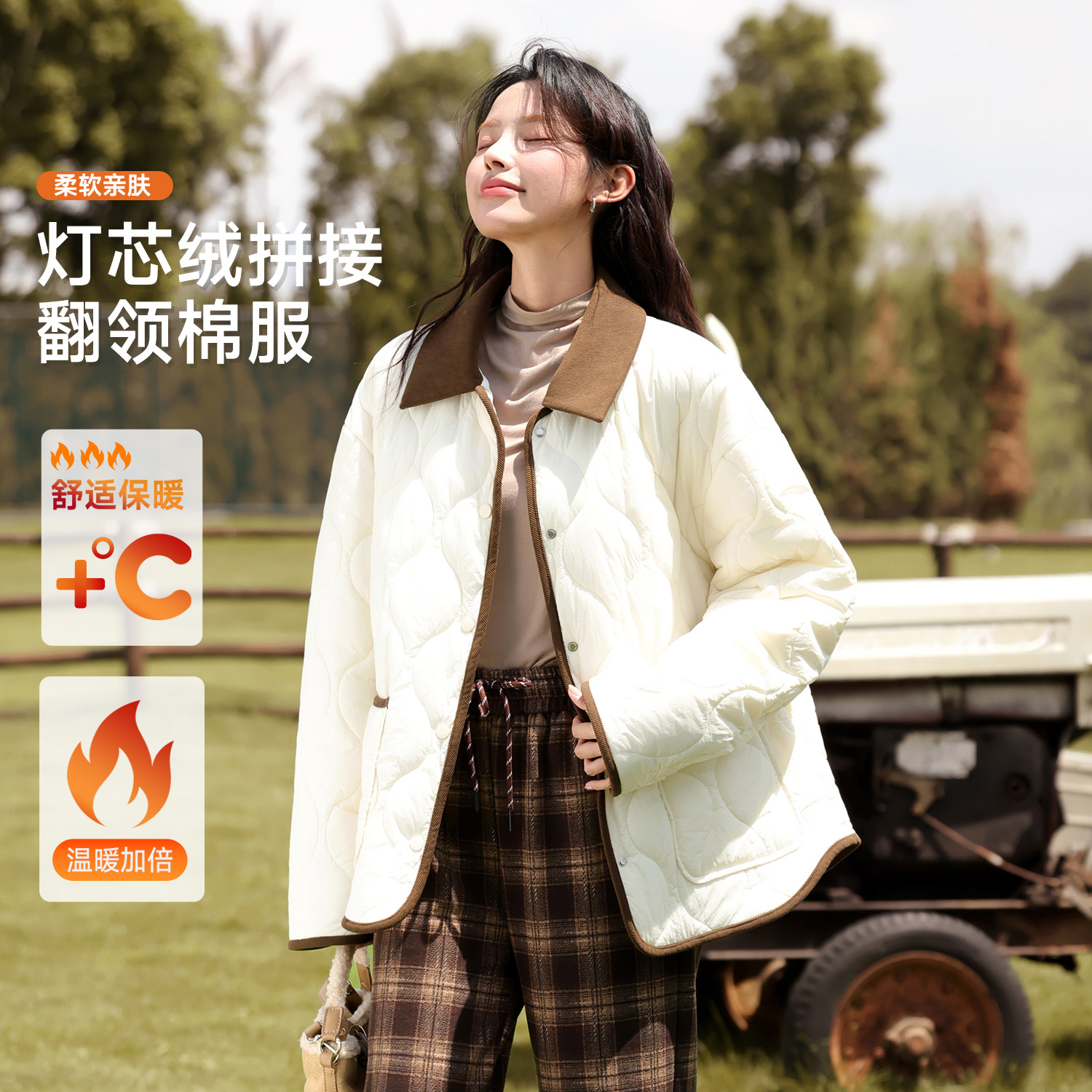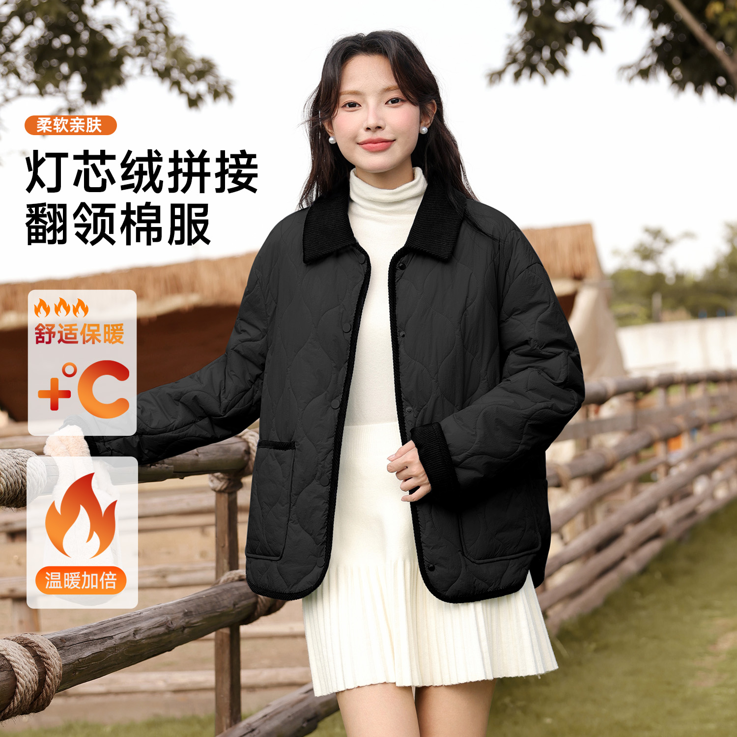 班尼路蓝色翻领夹棉轻薄棉服女外套2025冬季 超好看夹棉棉袄H 新款