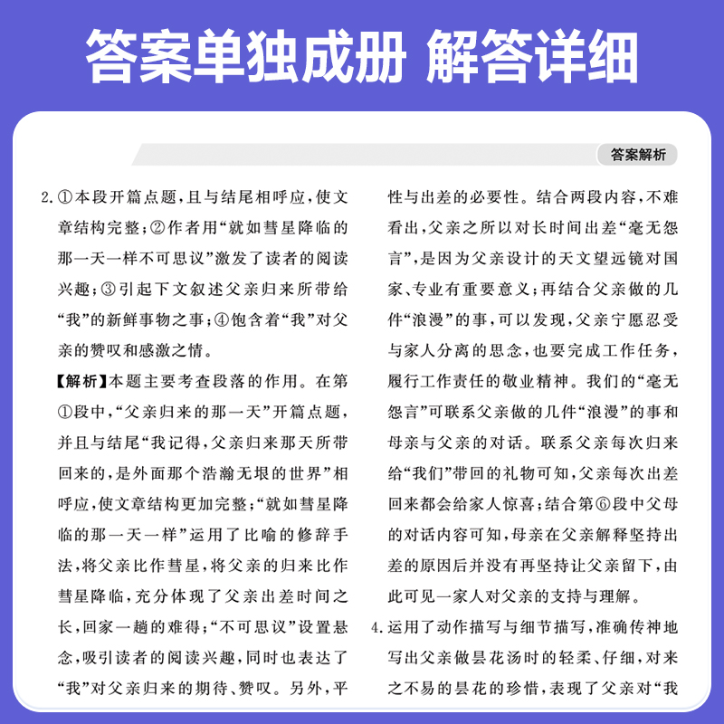 预备新初二 全国通用紧扣考点 蝶变学园初中二年级语文专项训练 文言文古代诗歌八年级阅读训练一本通 答案解析 现代文 2025暑假