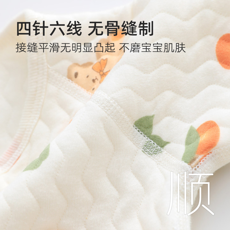 上衣纯棉新生儿三层厚 长袖 保暖半背衣初生婴儿衣服a类秋冬款 52码