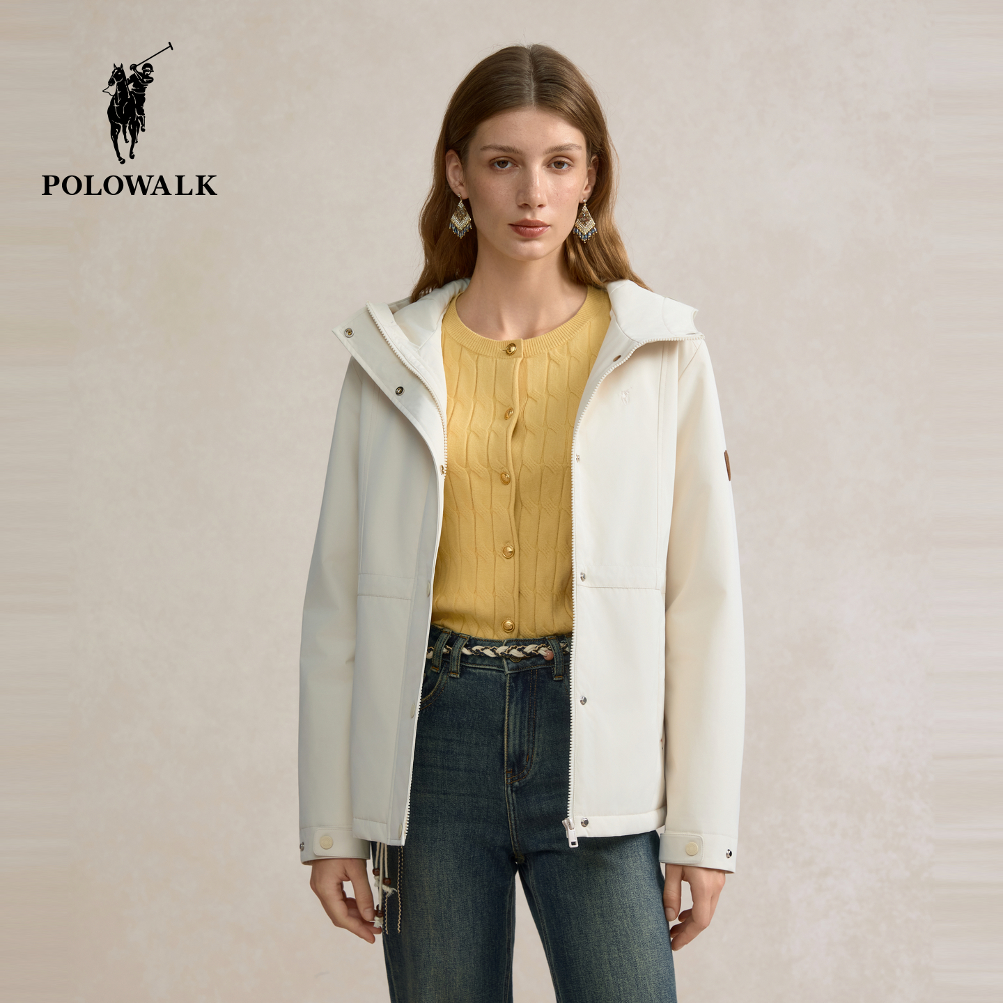 简约休闲夹克百搭通勤保暖连帽上衣 新品 POLOWALK女式 外套2025冬季