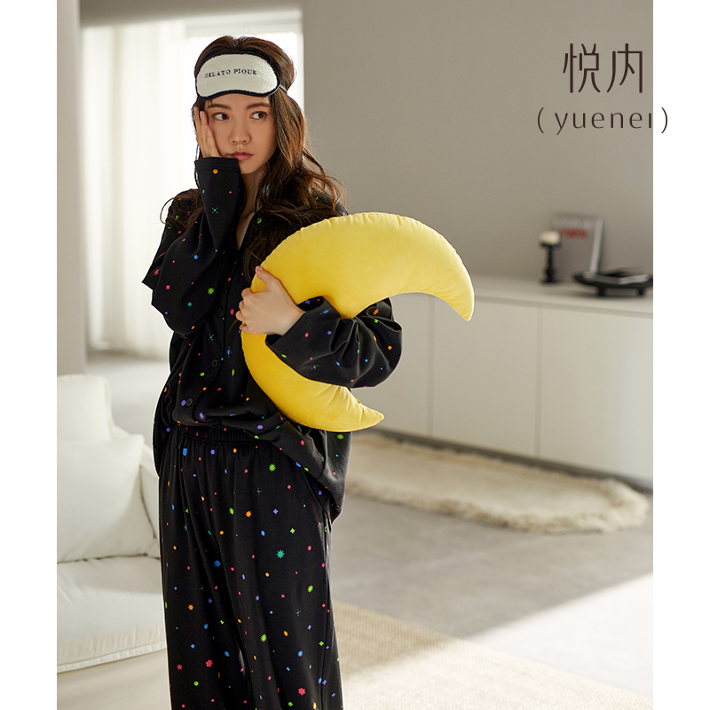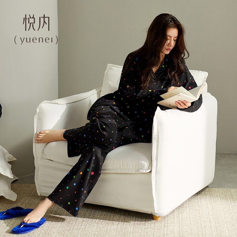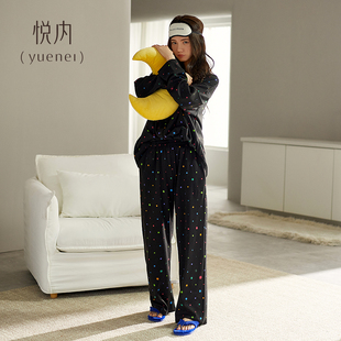 秋季 秋天黑色套装 纯棉长袖 薄款 家居服高级感夏季 悦内睡衣女春秋款
