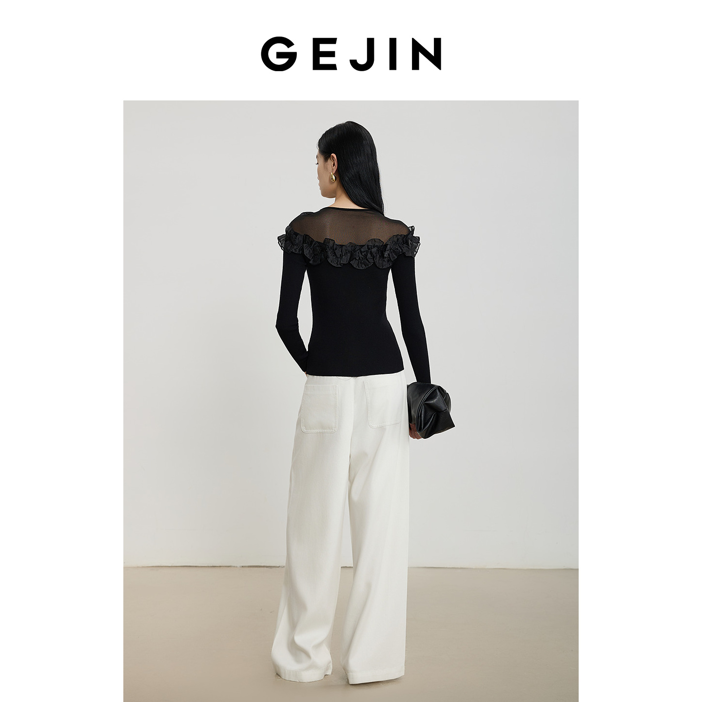 女上衣新款 歌锦1OO%羊毛视觉显瘦闭眼入 女人气质露肩设计针织衫