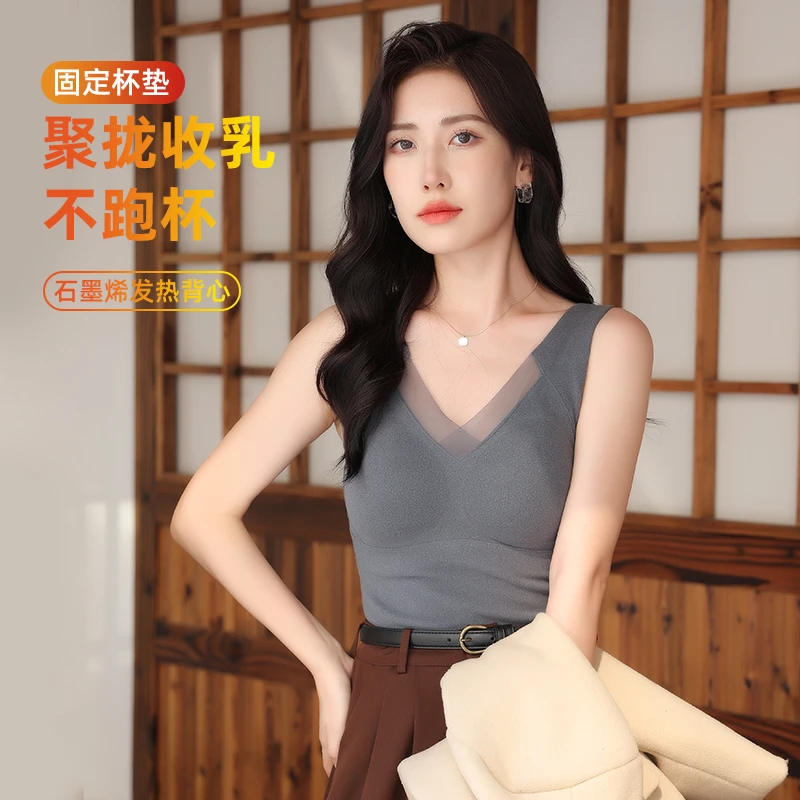 赛蔻石墨烯发热保暖背心女带胸垫免穿文胸一体式 内衣打底无痕上衣