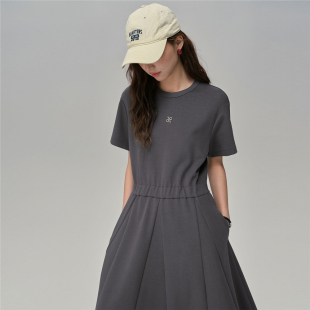 COCOBELLA简约气质黑色收腰极简风连衣裙女优雅短袖 长裙FR3033