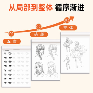 漫画描摹绘画本动漫人物手绘入门教程书临摹技法线稿线描美少女Q版 素描画册美术练习册 美少男专业浅印描红初学者自学零基础二次元