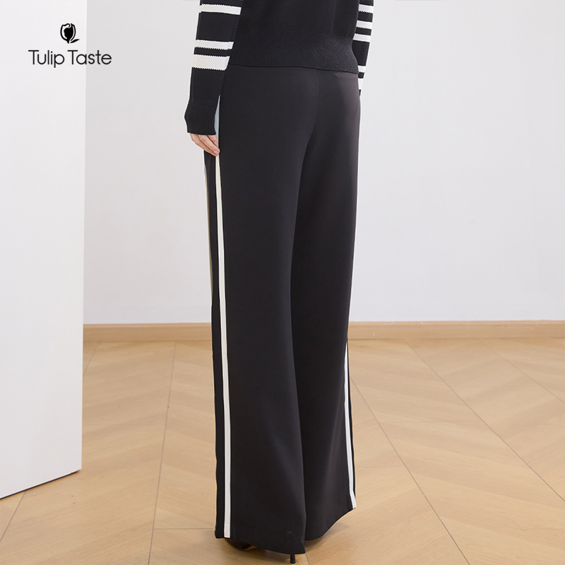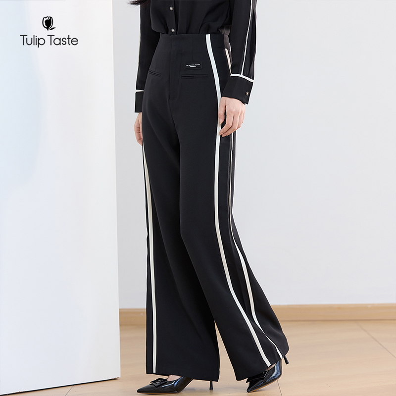 宽松长裤 郁香菲撞色阔腿裤 高腰显瘦直筒休闲裤 时尚 女气质通勤秋季