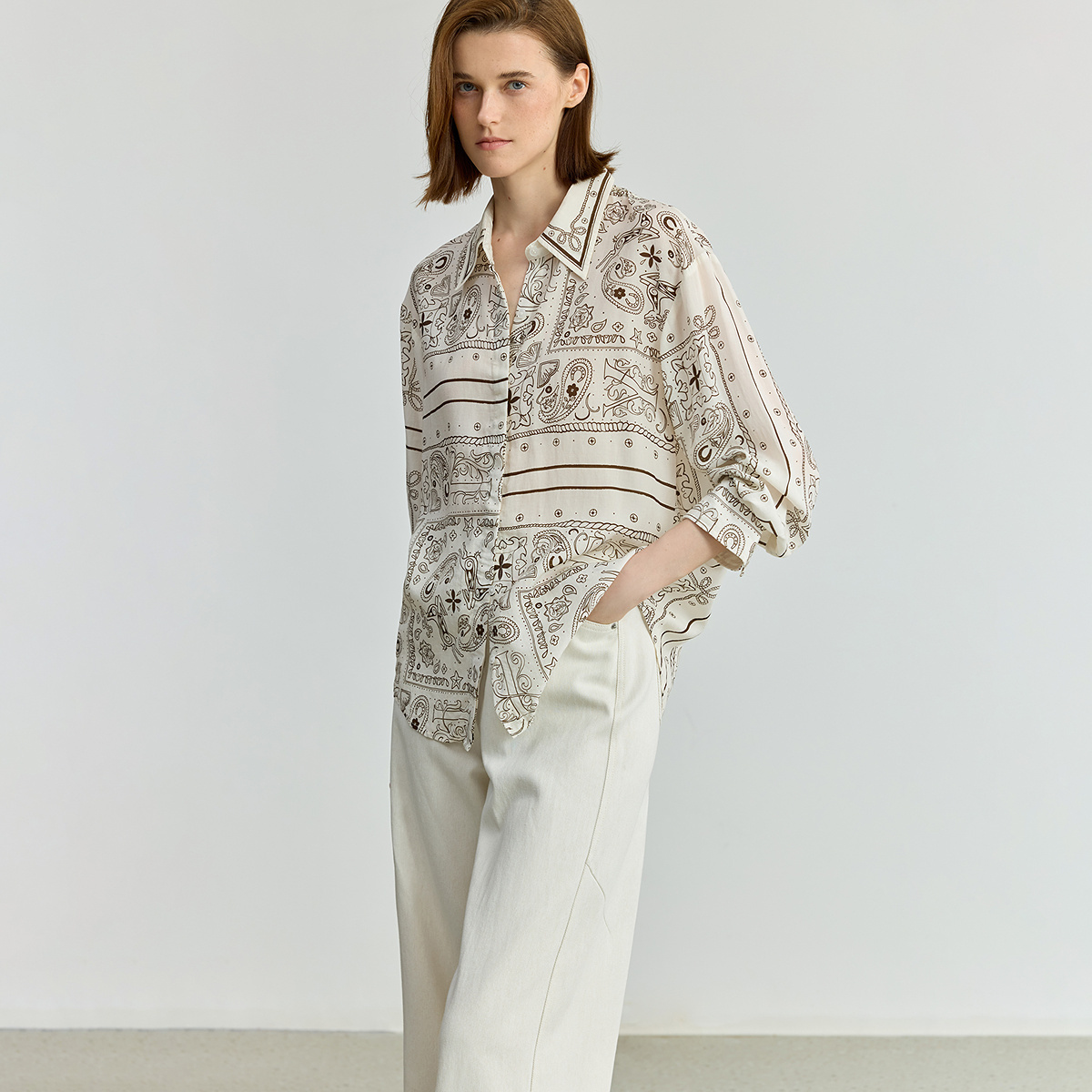 外套女 衬衫 LILY2025秋新款 莱赛尔亚麻复古波西米亚腰果花休闲长袖