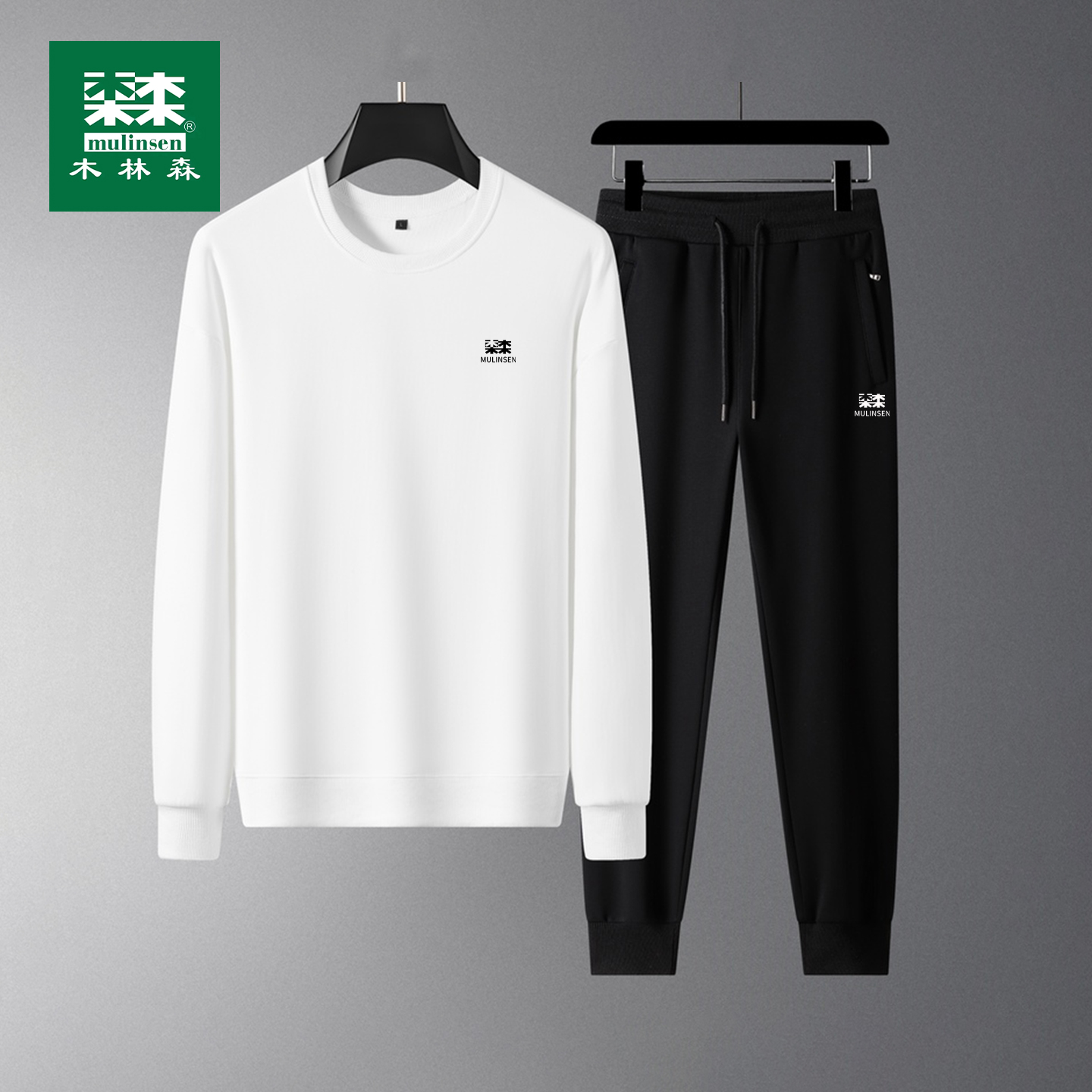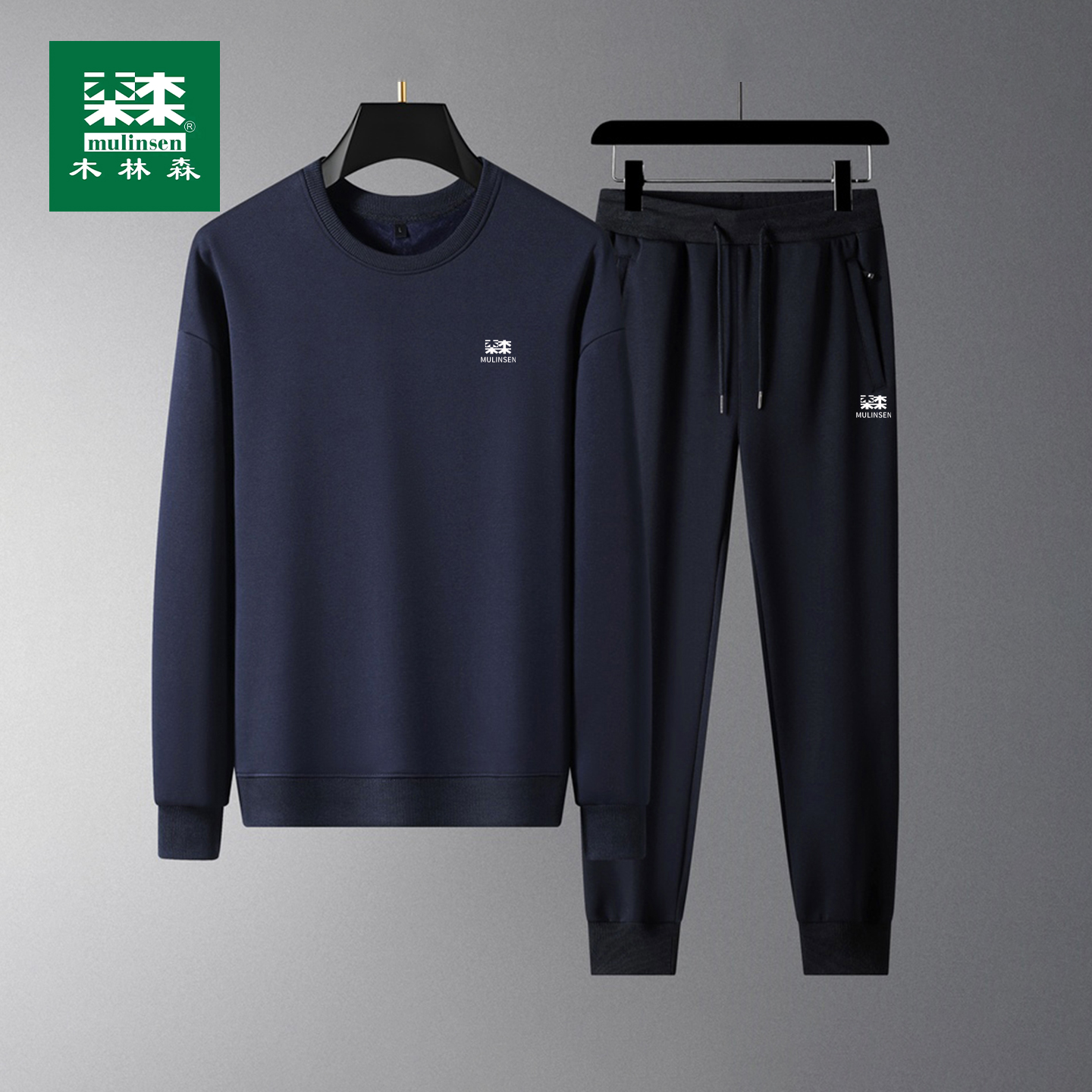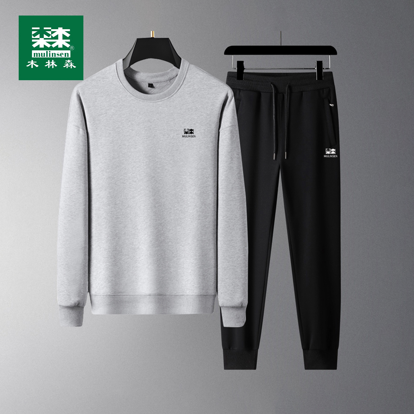 加绒保暖圆领卫衣两件套 2025秋冬新款 木林森男士 纯棉运动休闲套装