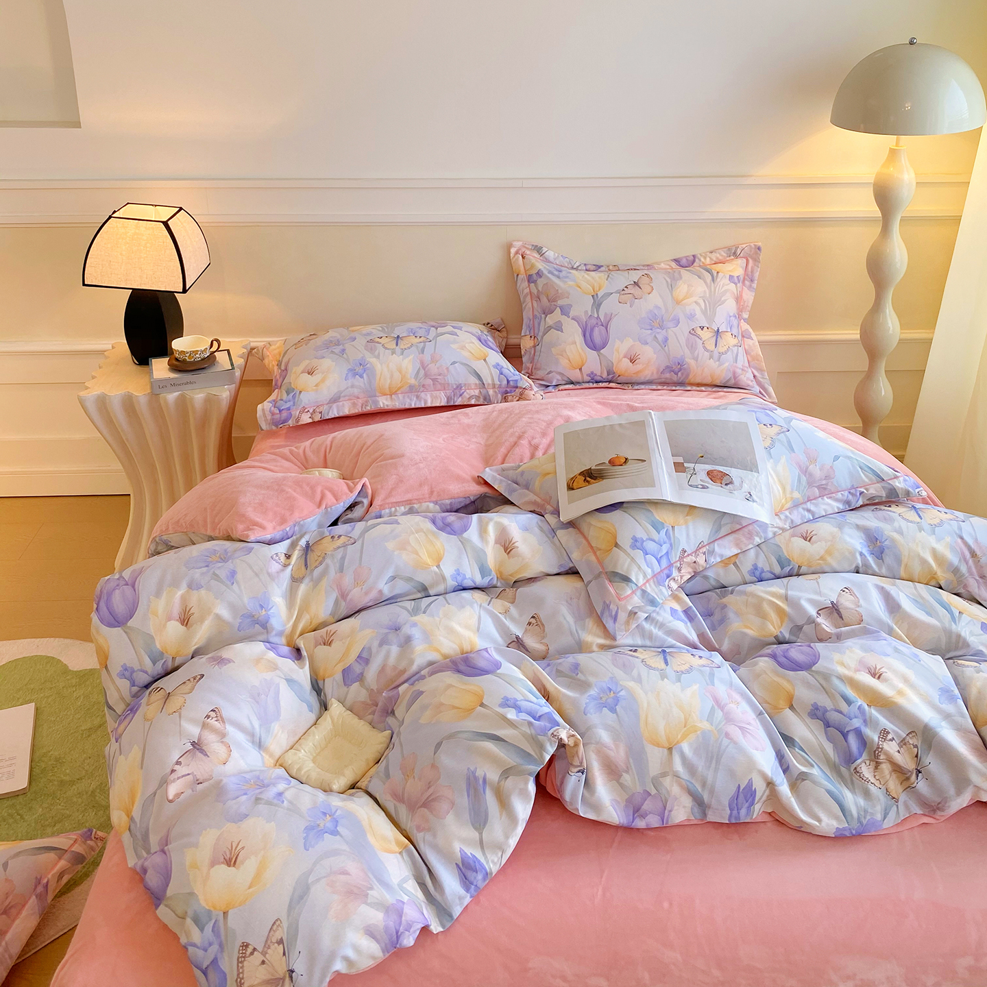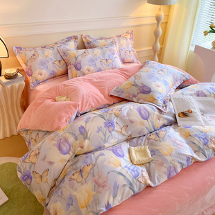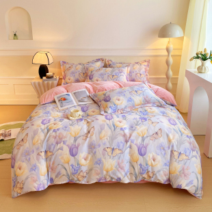 雅芳婷全棉四件套床笠款 小清新印花超柔纯棉抑菌多用被套床品套件