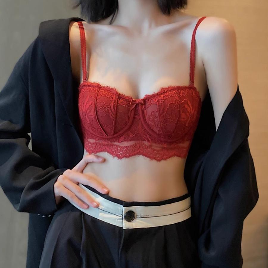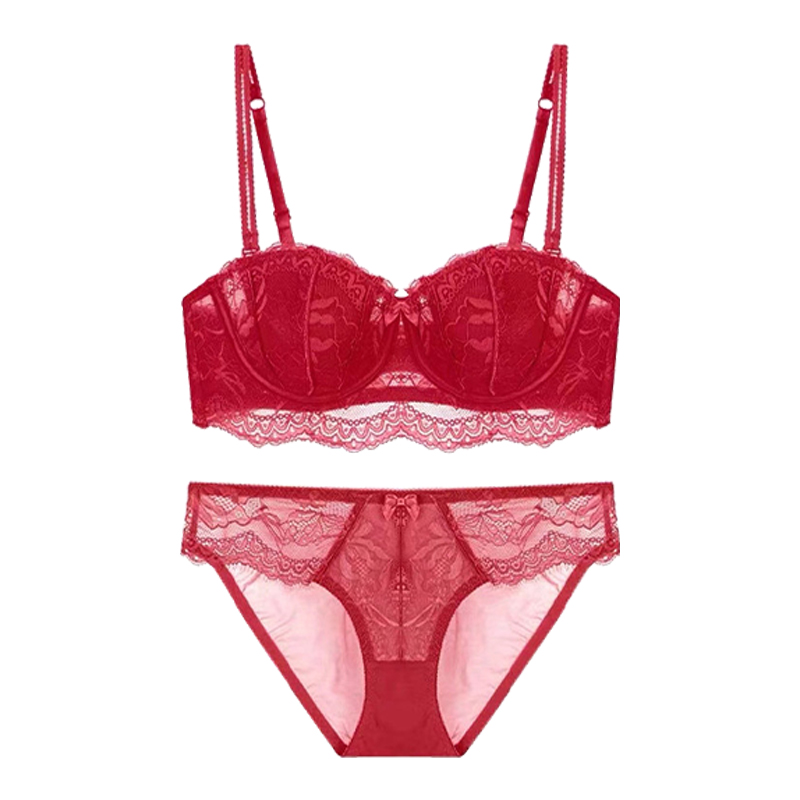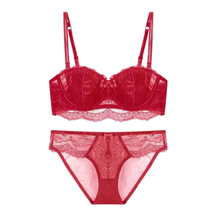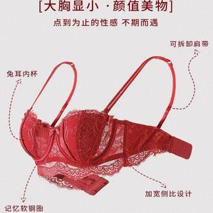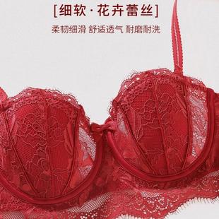 本命年 新娘大胸显小性感美背超薄款 红色蕾丝内衣内裤 女生结婚套装