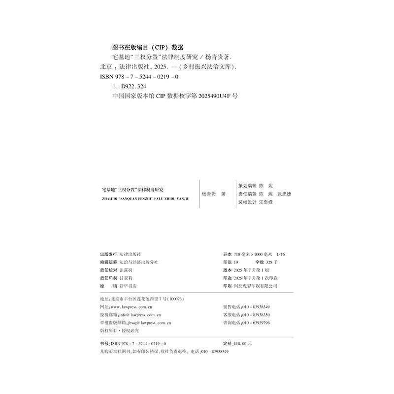 三权分置 宅基地 法律制度研究 杨青贵 社9787524402190 正版 法律出版 2025新书