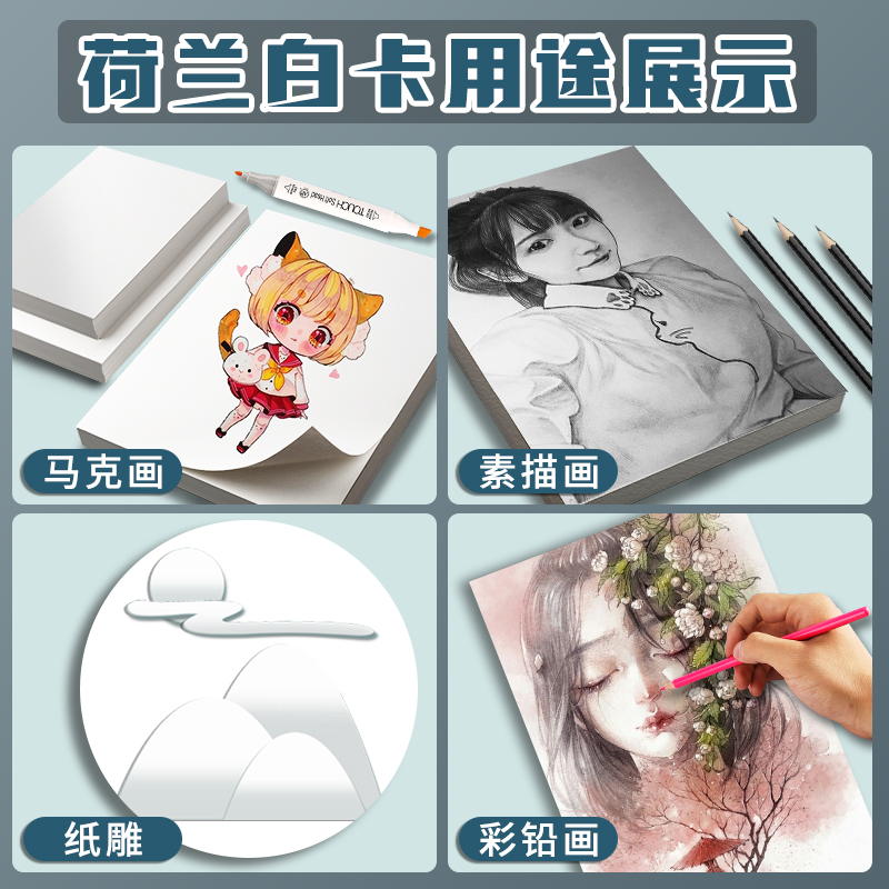 a4荷兰白卡纸a3手抄报专用纸儿童绘画手工4k画画纸8k八开白色卡纸300g厚硬白卡纸小学生美术专用马克笔铅画纸