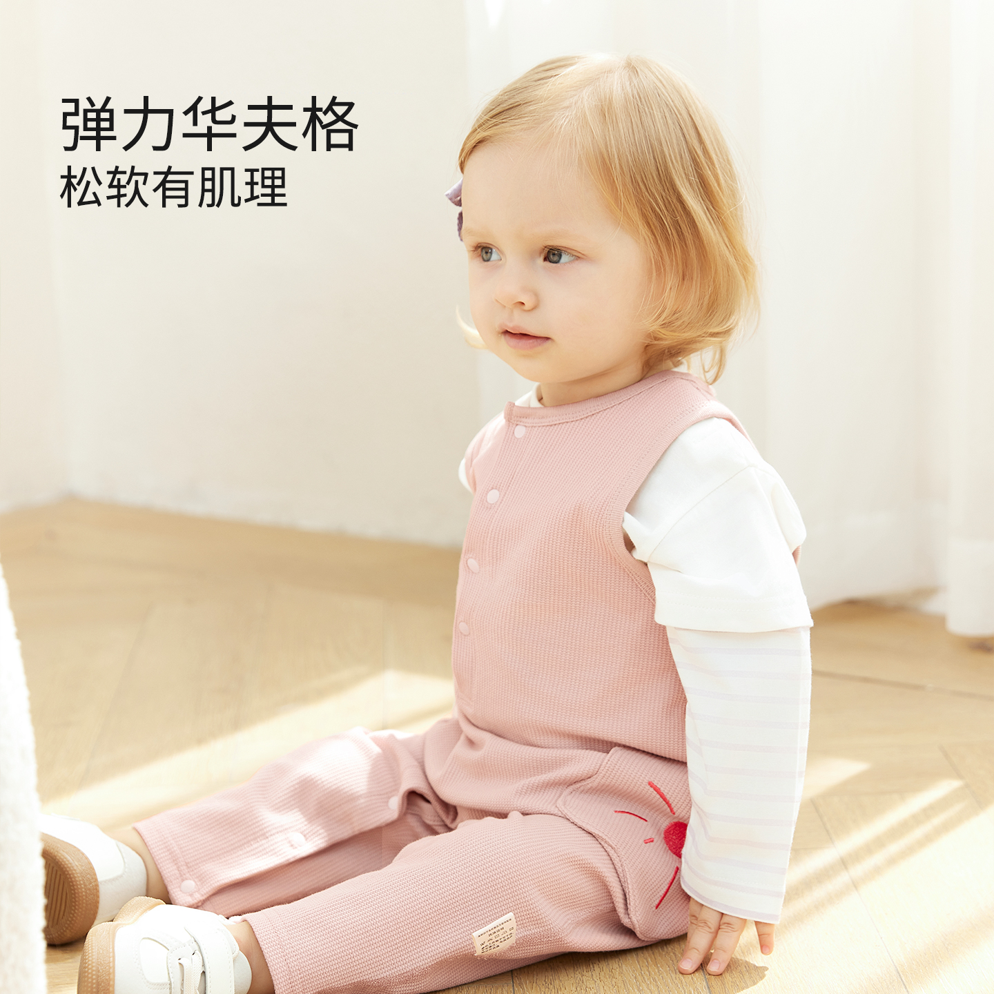 超萌可爱无袖 外出衣服秋装 华夫格男女宝宝背带裤 婴儿连体衣春秋款