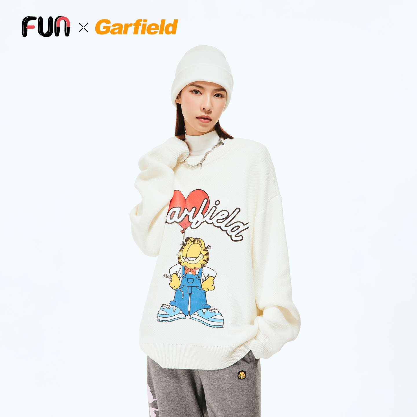 加菲猫联名卡通印花百搭针织衫 Fun潮牌圆领毛衣2025年冬季 新款