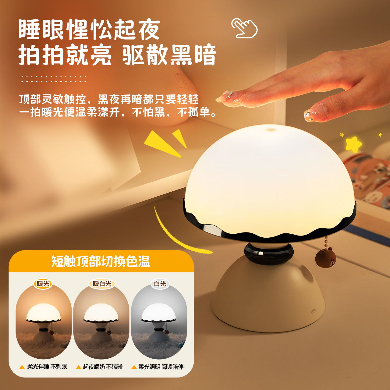 硅胶小夜灯卧室床头改造睡眠儿童房间装 饰充电拍拍台灯男女孩礼物