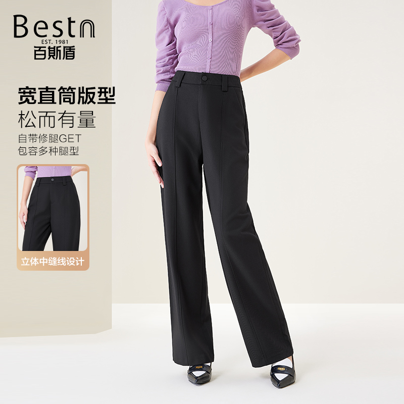 长裤 百斯盾官方 秋冬不易皱宽松弹力纯色西装 女士西裤 莱赛尔