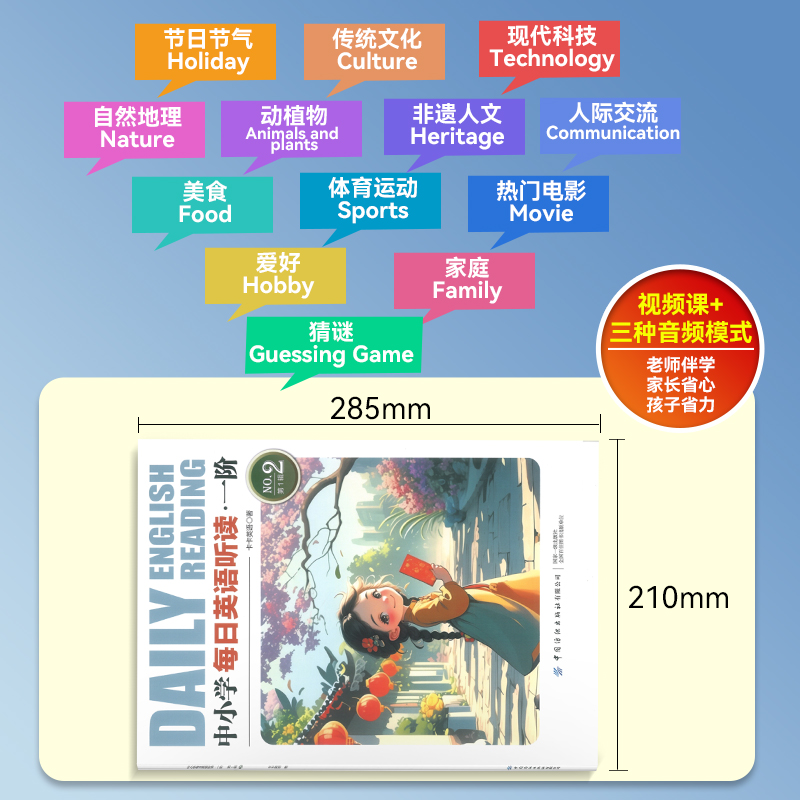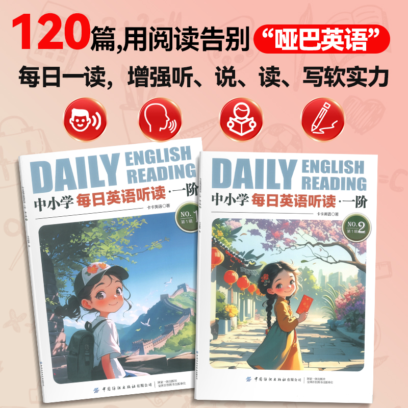 卡卡英语中小学每日英语听读一阶二阶第1辑 素音频伴读 第2辑阅读小短文增强英语听说读写实力视频精讲课每日一读大量中国文化元