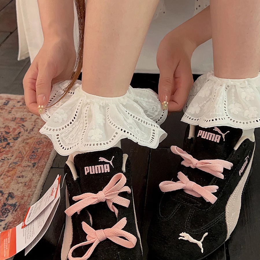 白色蕾丝花边袜子女秋冬款 ins韩系洛丽塔中筒短袜 芭蕾风配德训鞋