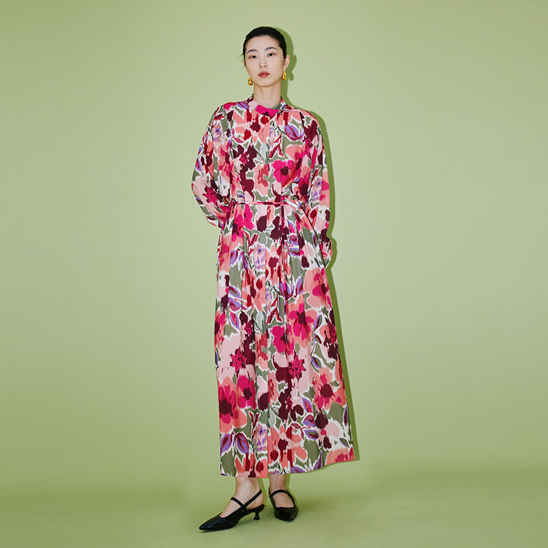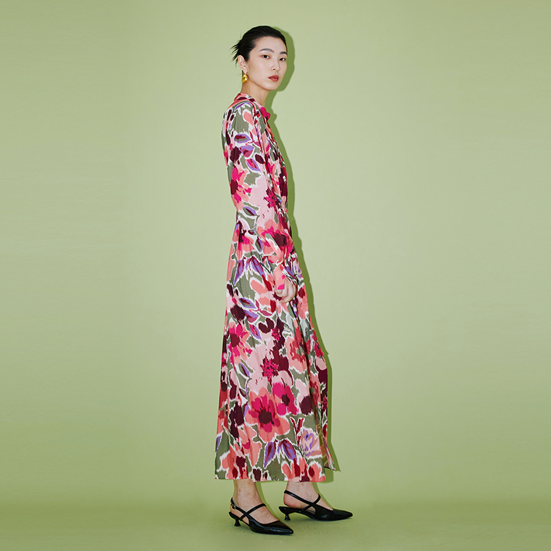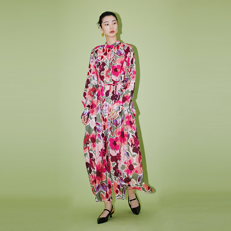 长袖 复古通勤中长款 系带裙子 连衣裙女秋2025新款 颜域优雅印花法式