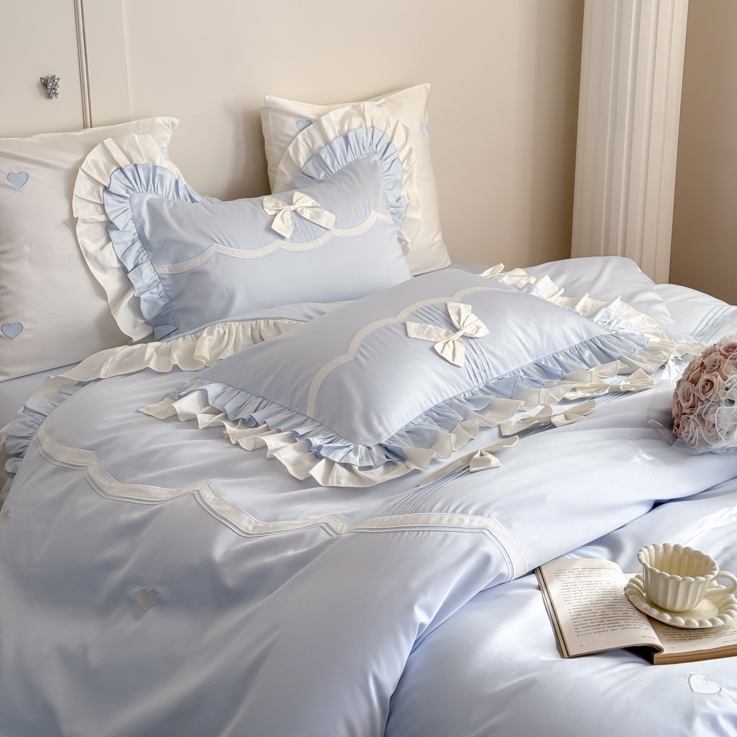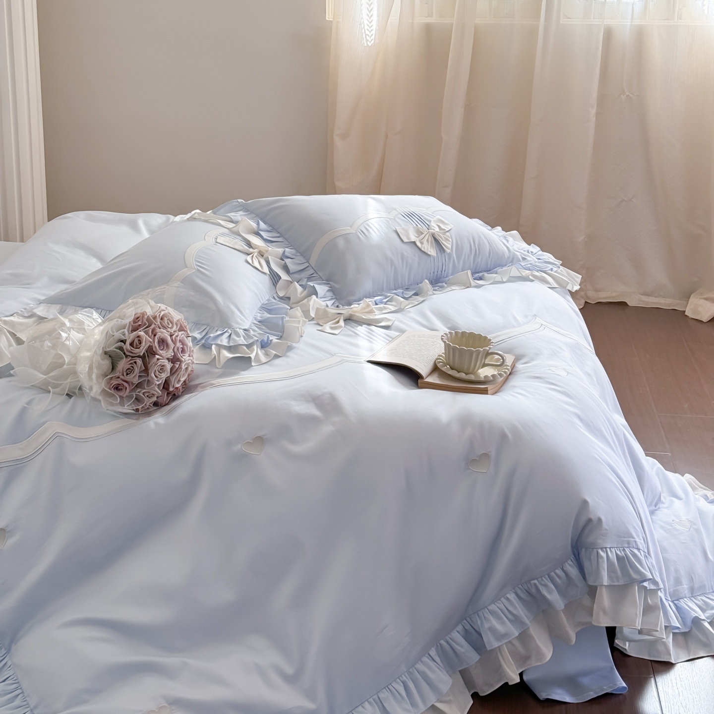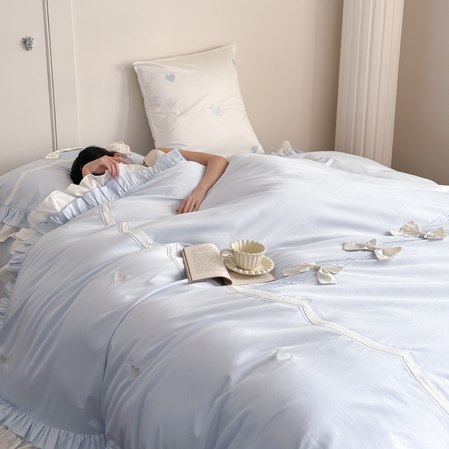 红花车公主风长绒棉四件套蝴蝶结少女心荷叶花边被套床单全棉套件