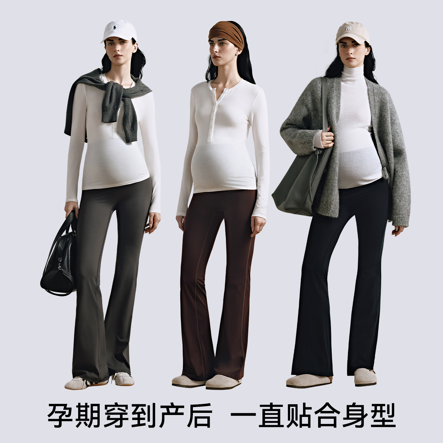 子2025新款 瑜伽通勤裤 全孕期不掉裆秋冬外穿鲨鱼裤 嫚熙孕妇喇叭裤
