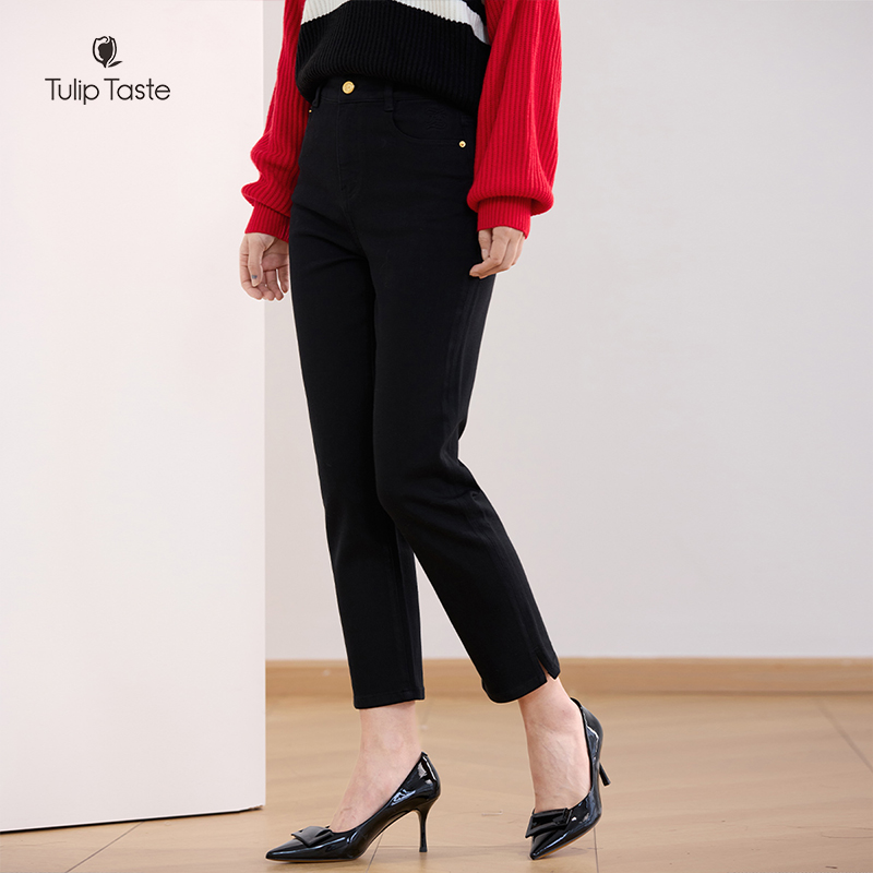 女气质通勤秋季 长裤 时尚 百搭修身 高腰显瘦小脚烟管裤 郁香菲牛仔裤