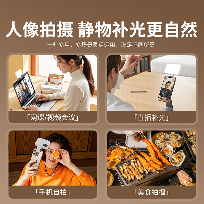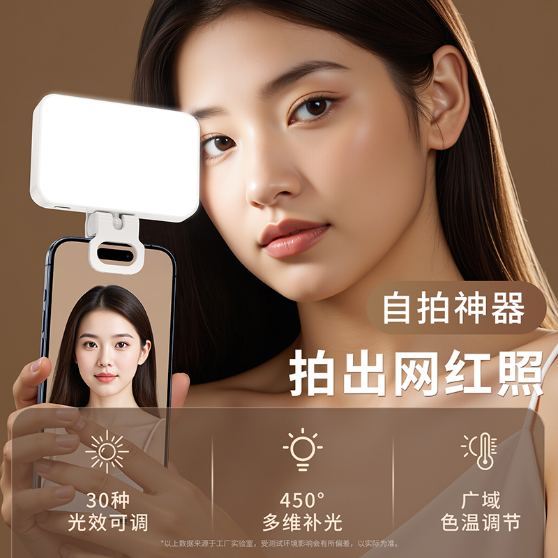 可充电}补光灯夹手机拍照专用迷你便携式 自拍直播摄影拍摄打光灯美食led氛围灯小巧户外手持柔光灯口袋美颜灯