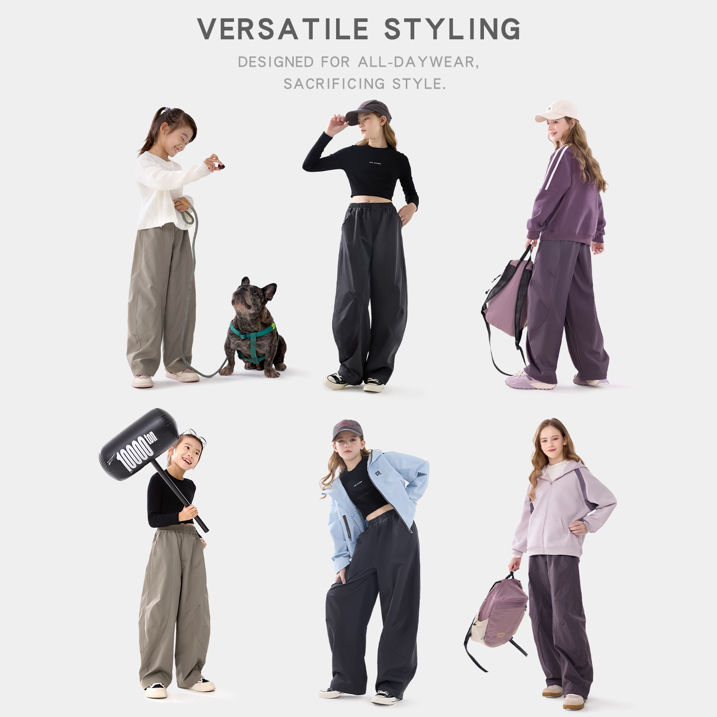 女夏季 裤 薄款 运动冲锋裤 粉色阔腿 大码 速干休闲春秋新款 小个子工装