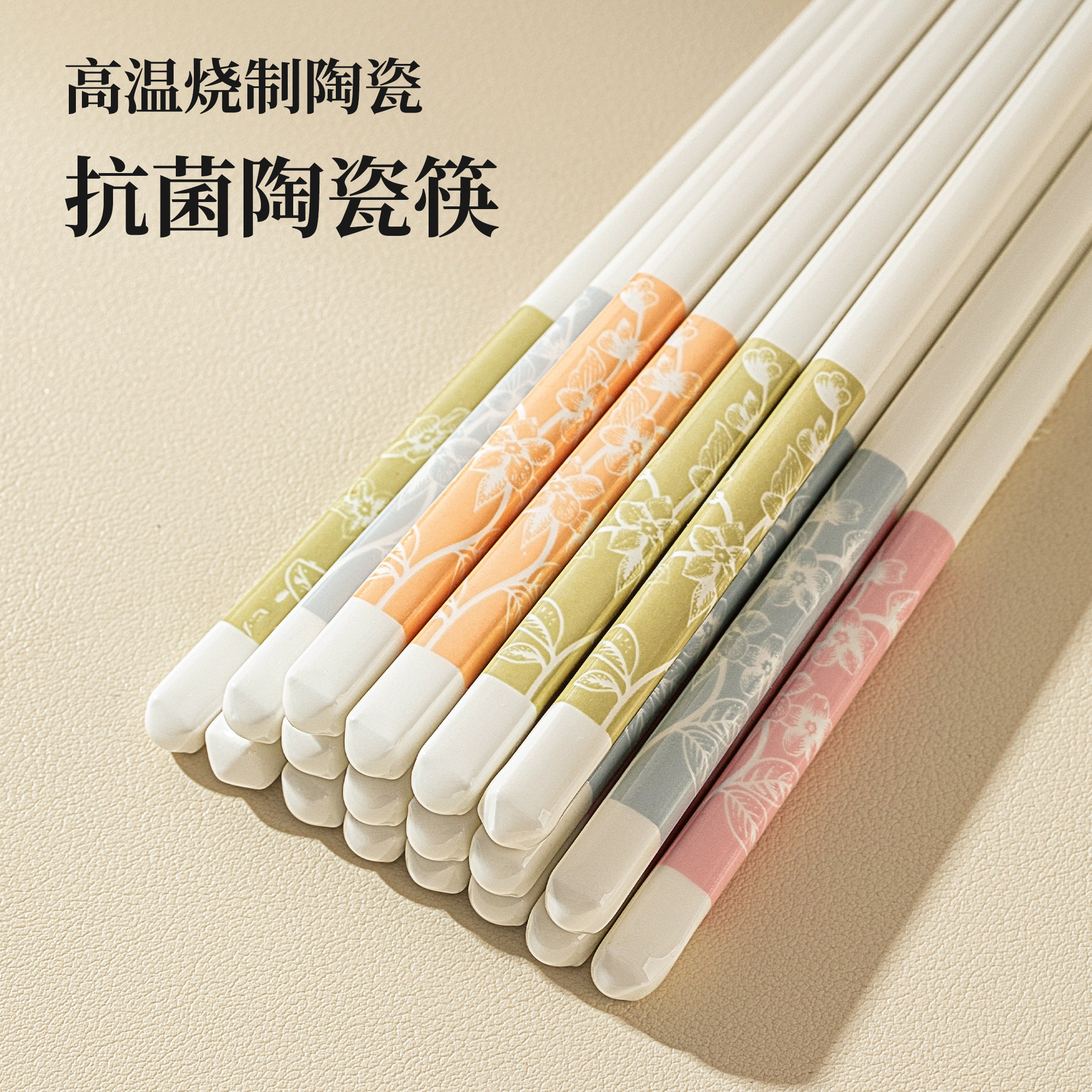 陶瓷筷子家用高档抗菌防霉家庭专人专用食品级防滑一人一筷瓷筷子