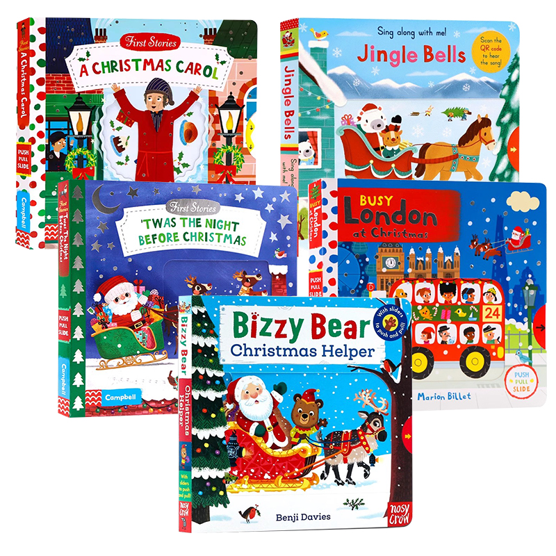 Christmas忙碌 圣诞节First 英文原版 6岁幼儿童启蒙游戏玩具书 绘本Busy 圣诞节主题机关操作书5册 Stories系列机关纸板书