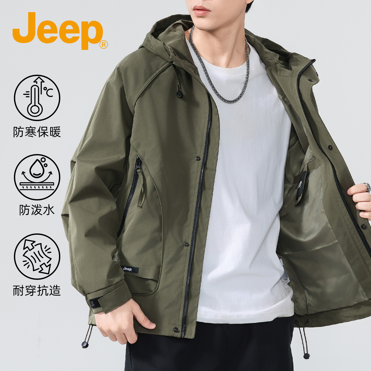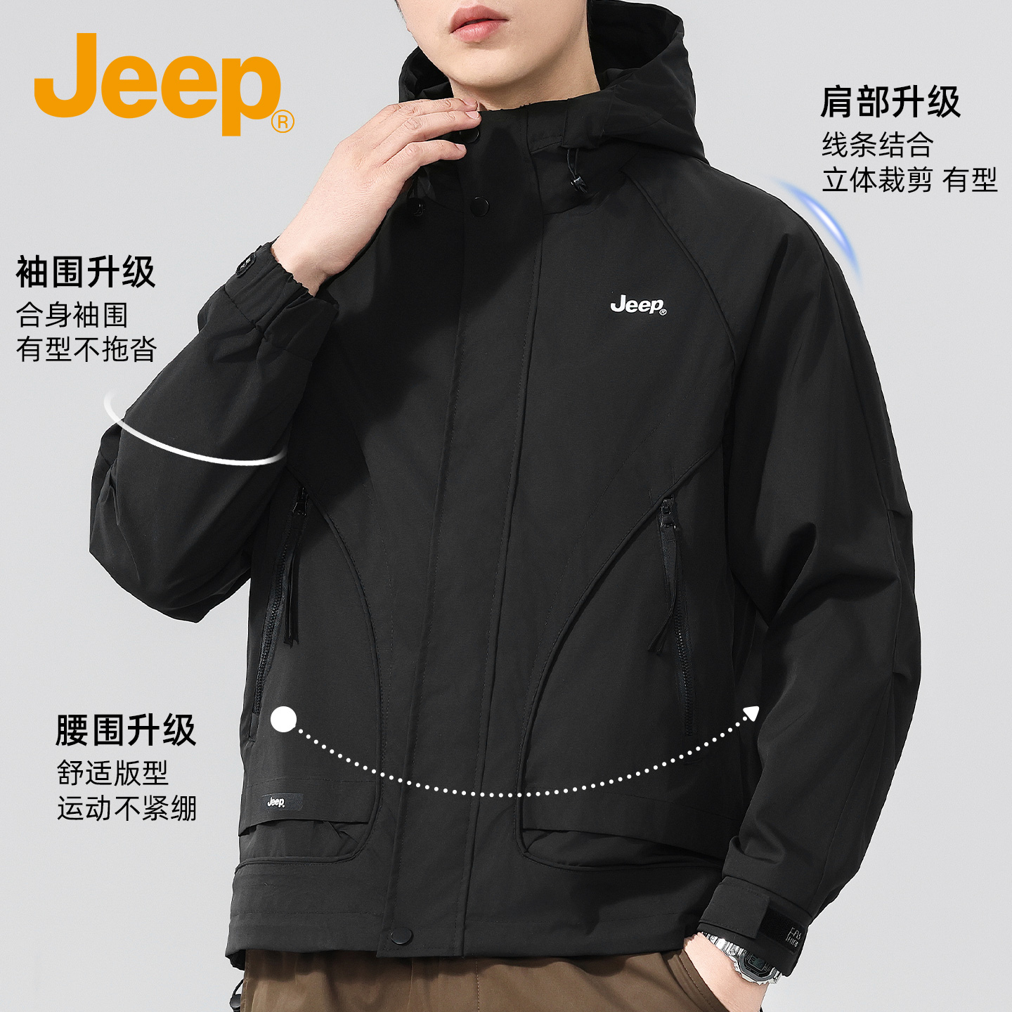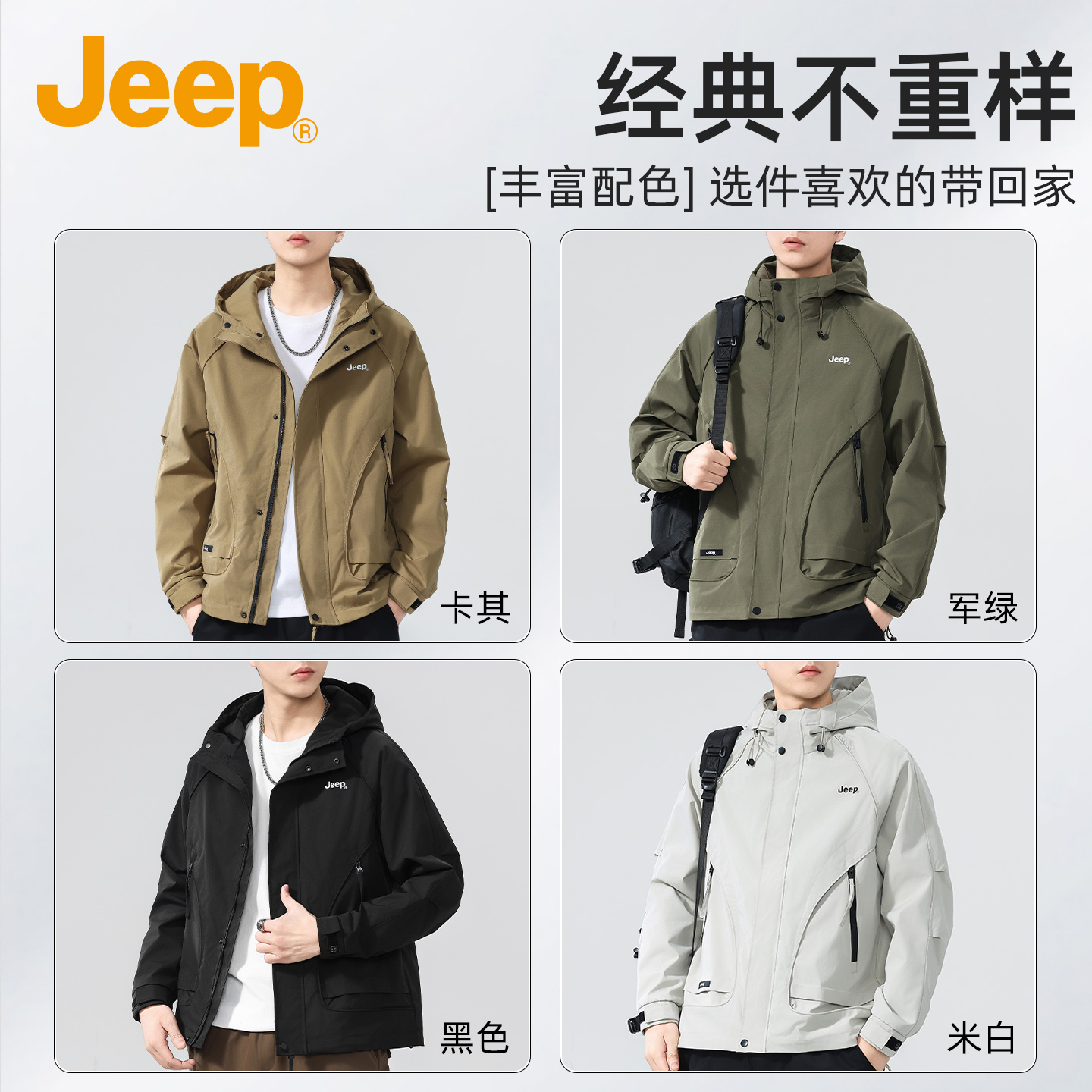 新款 2025新款 宽松男士 连帽正品 冲锋外套美式 JEEP吉普夹克男春秋季