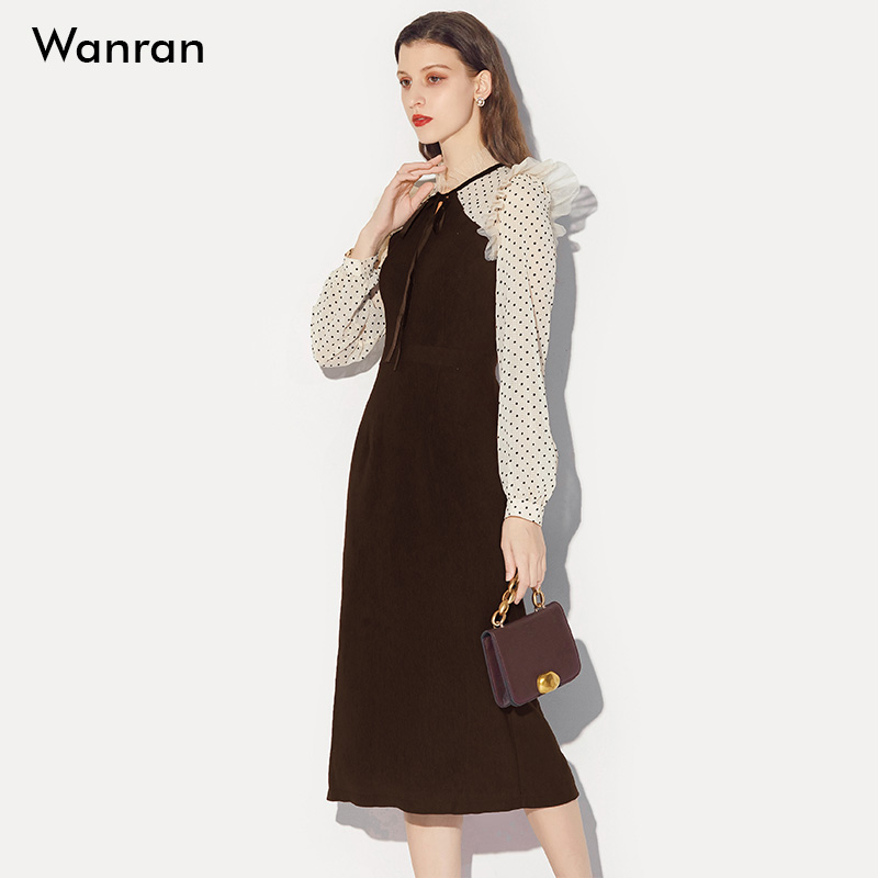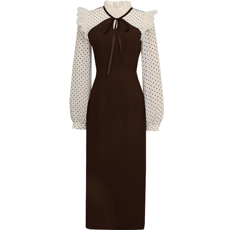气质法式 新款 复古波点修身 收腰显瘦中长款 2025秋季 连衣裙长袖 女装
