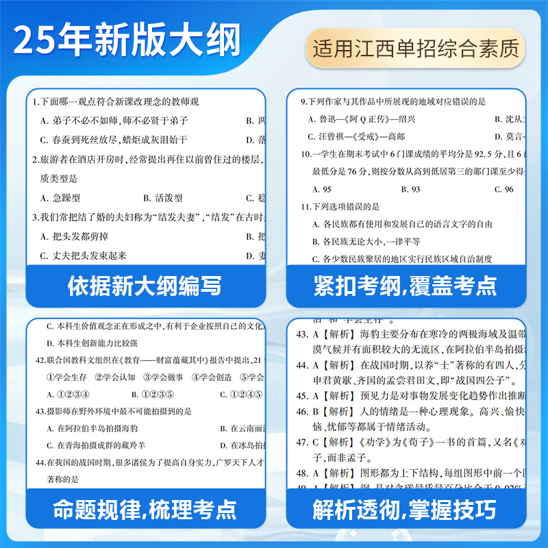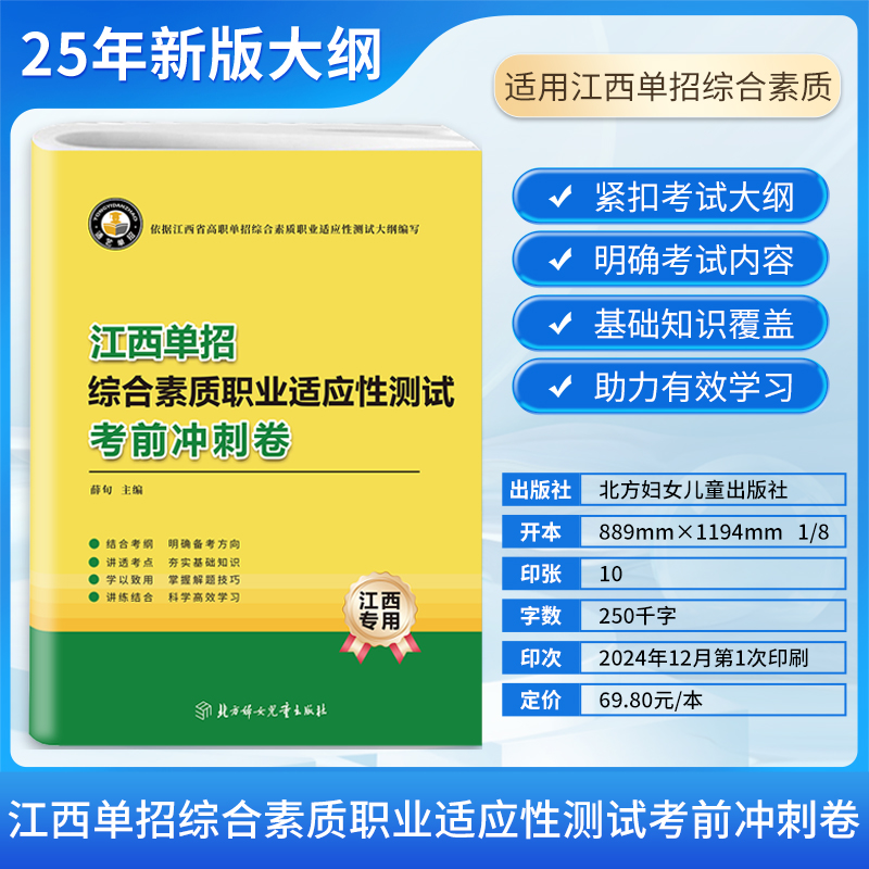 2026江西省高职单招考试复习资料综合素质职业适应性测试考前冲刺试卷高职单招联盟统一考试历年真题集单独招生考试知识点复习书