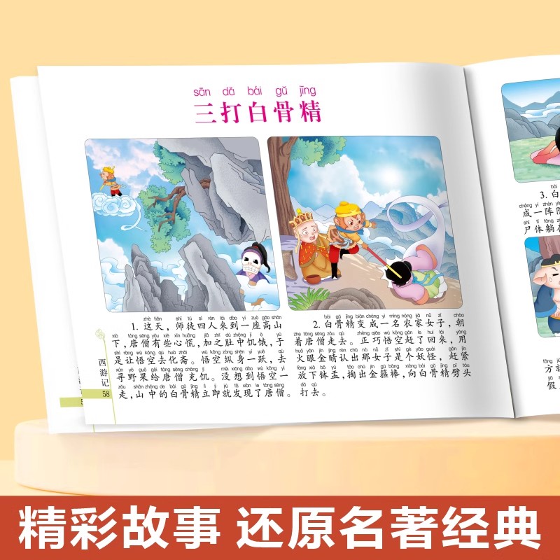 儿童睡前故事书中国古代文学经典 全4册小学一二年级课外阅读书西游记三国演义水浒传红楼梦带拼音 读物 四大名著彩图注音版 漫画版