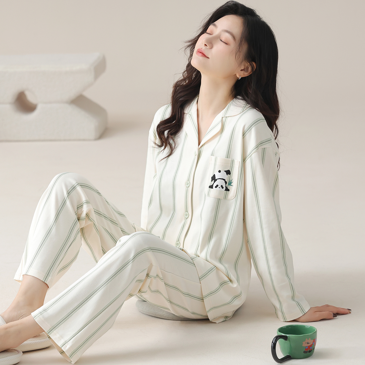 女款 薄款 长袖 纯棉睡衣居家透气套装 家居服宽松 长裤 都市丽人春秋季