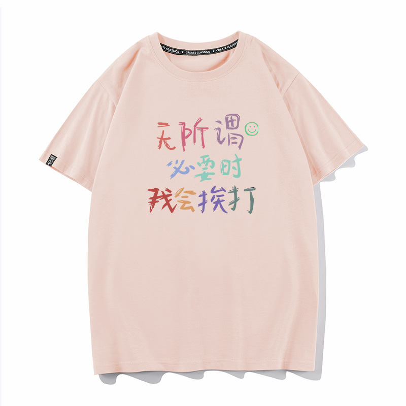 男女宽松衣服 T恤衫 无所谓必要时我会挨打文字情侣装 学生纯棉短袖