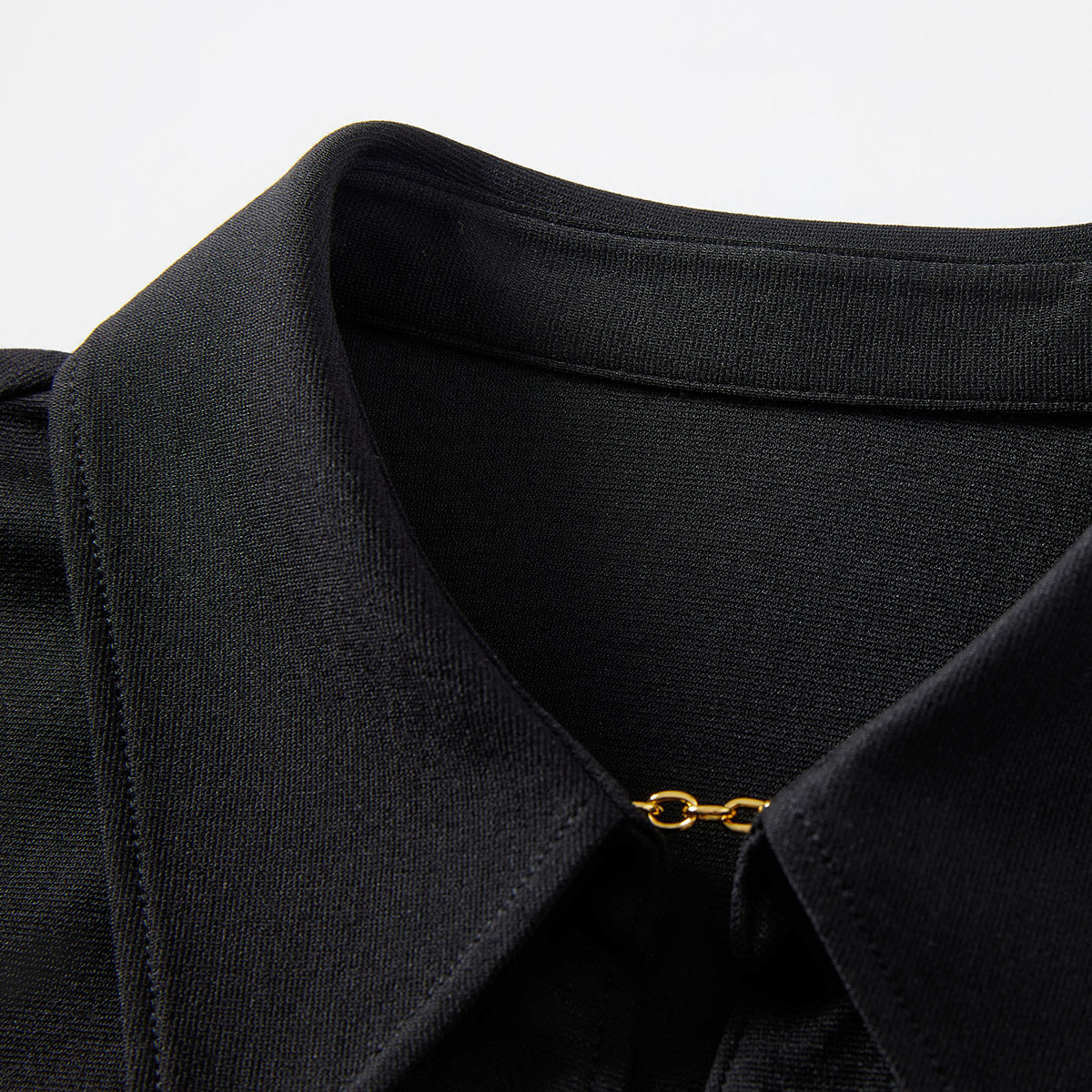 痞帅高级感休闲男装 美式 男夏季 衬衫 古巴领衬衣 黑色肌理感提花短袖
