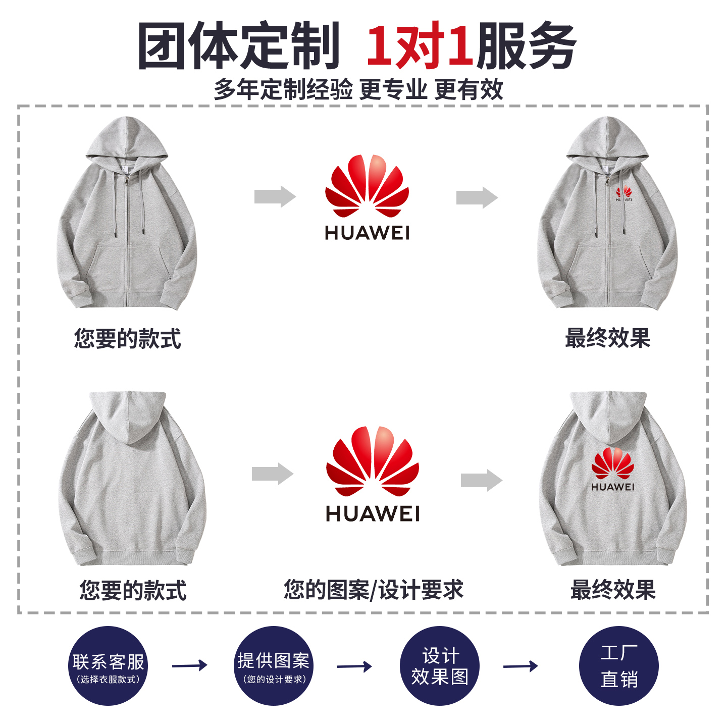 400G华棉加绒拉链双帽卫衣印制logo刺绣DIY文化衫 705 长袖 XCY