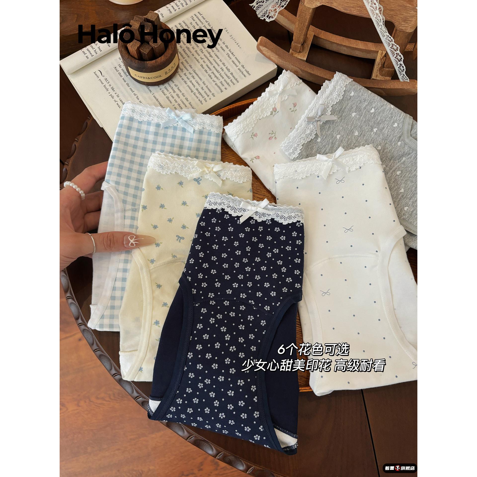 复古碎花少女内裤 纯棉裆抑菌中腰无痕透气舒适蕾丝边蝴蝶结三角裤