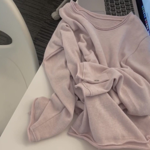 女毛衣宽松上衣 外套25早秋穿搭新款 阔色粉色撞色假两件针织衫 开衫