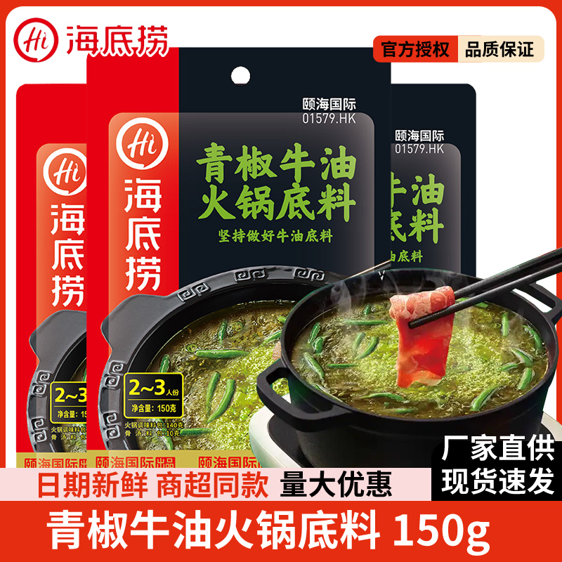 海底捞青椒牛油火锅底料150g重庆麻辣串串香炒菜煮面青椒鱼调味料