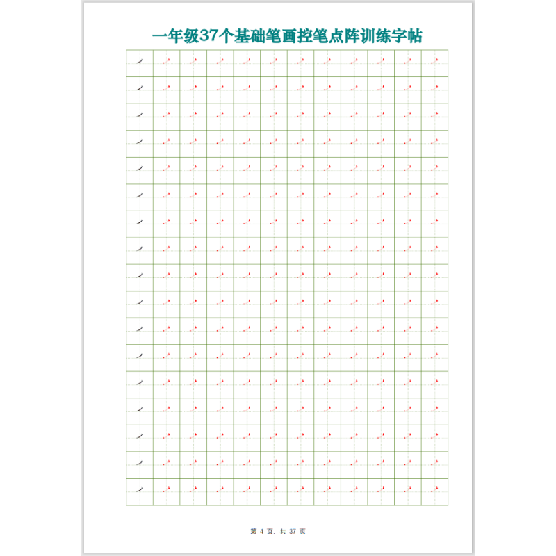 一年级37个基础笔画控笔点阵训练字帖偏旁部首基础笔画专项练习偏旁部首集中强化训练儿童书写必备控笔点阵训练