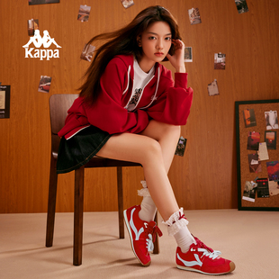 百搭跑鞋 kappa漫游记卡帕女鞋 新款 子2025秋季 复古红色运动休闲鞋