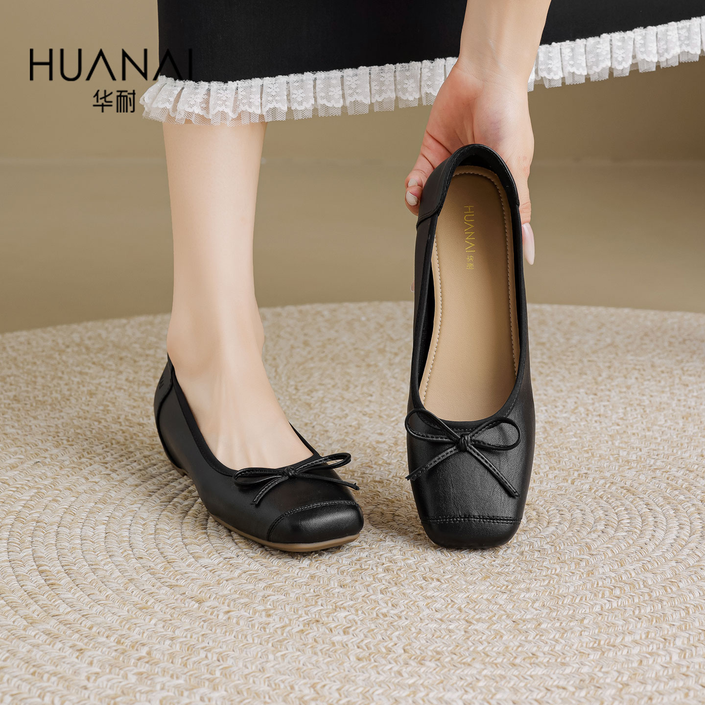 新款 女鞋 女士温柔蝴蝶结浅口单鞋 淑女平底单鞋 法式 热风2025年夏季