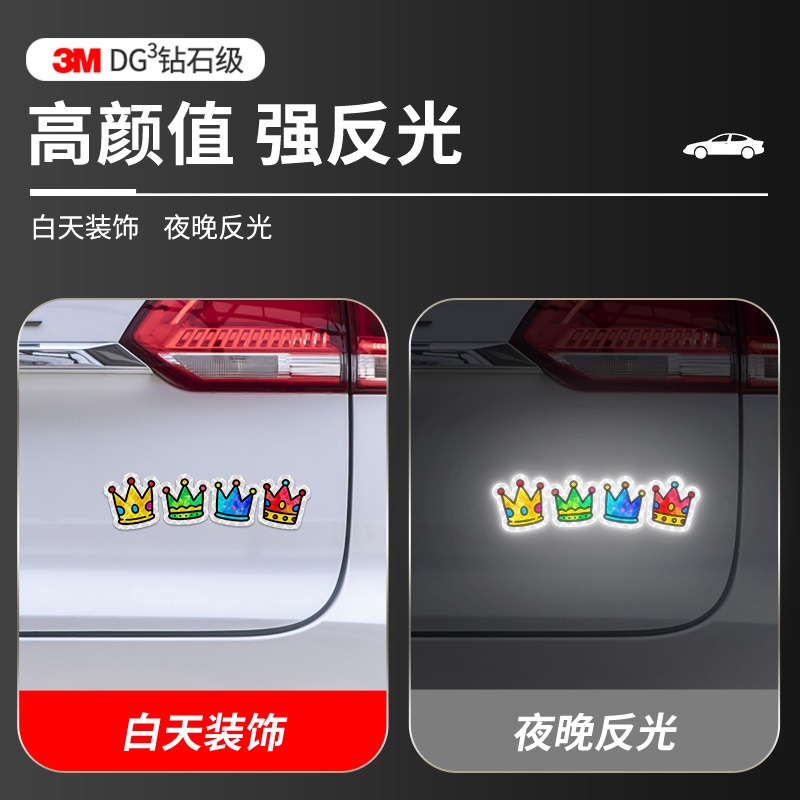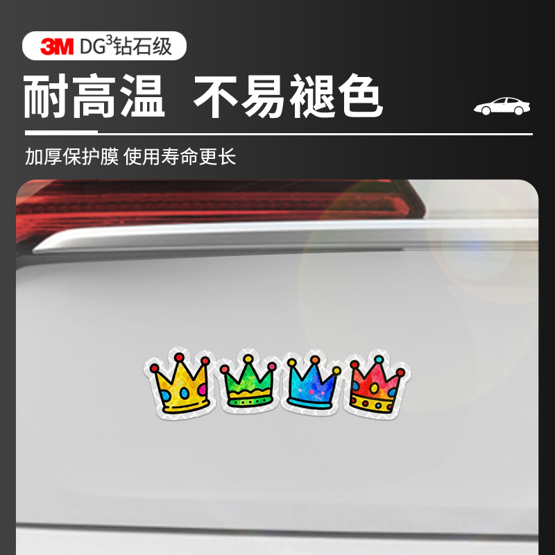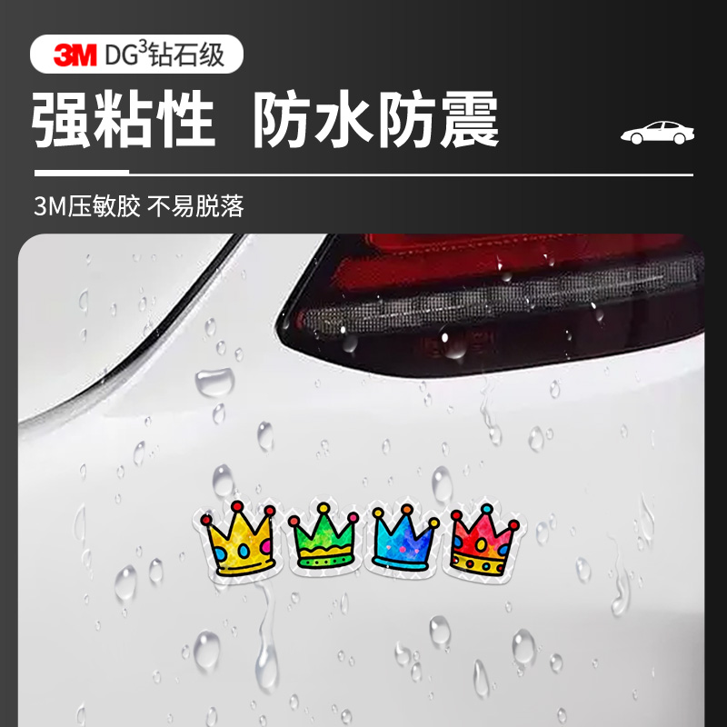 3M个性 饰防水反光车贴 创意彩色皇冠汽车窗贴纸电动车摩托车头盔装