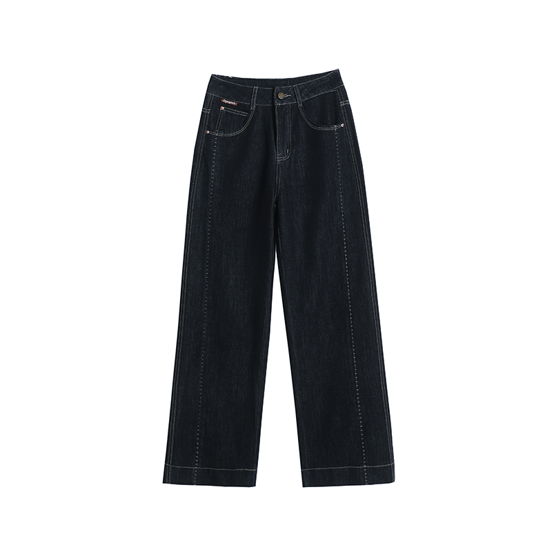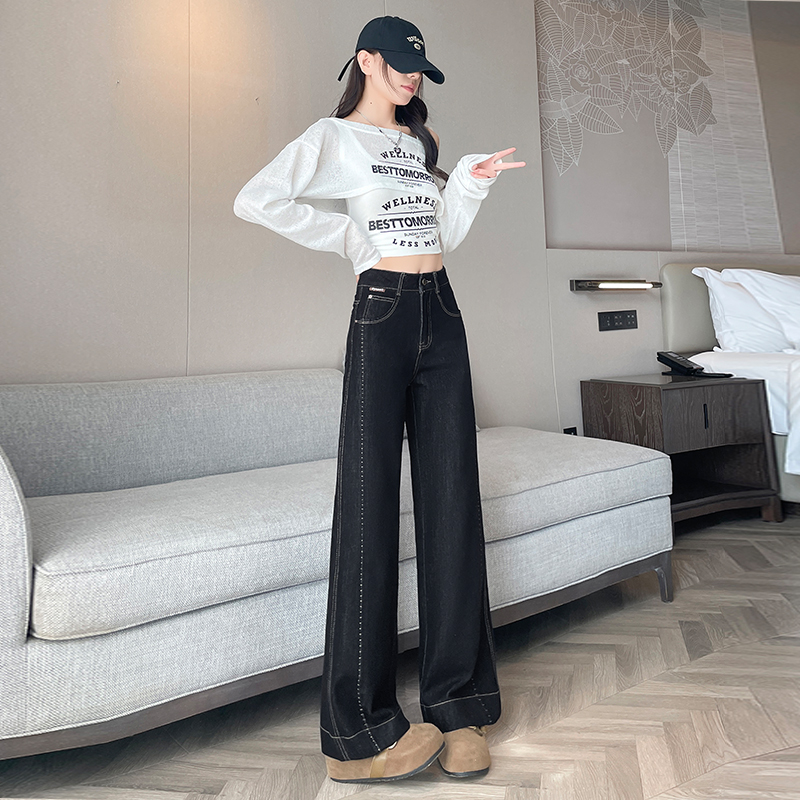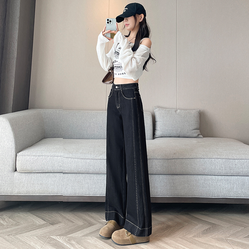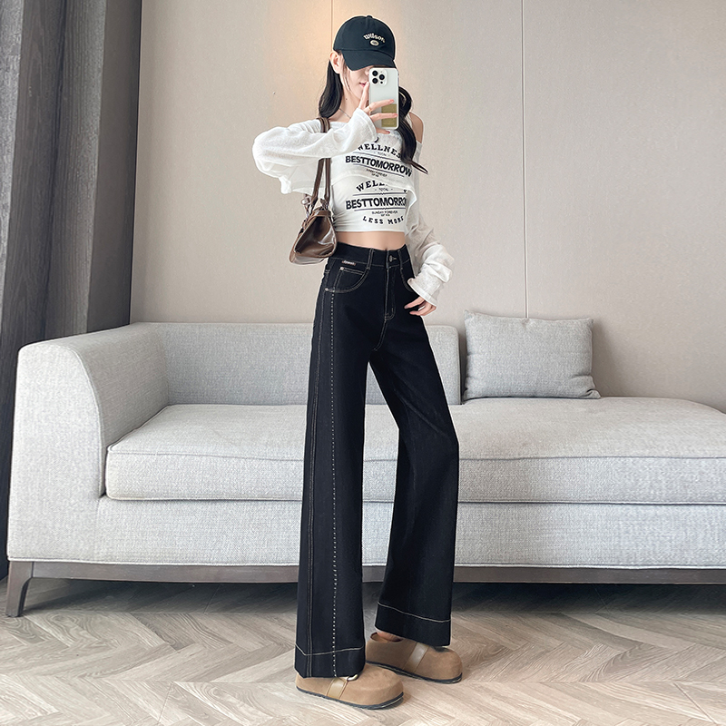 高腰阔腿遮跨小个子弹力裤 黑金色窄版 2025新款 女春秋季 直筒牛仔裤